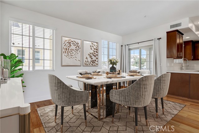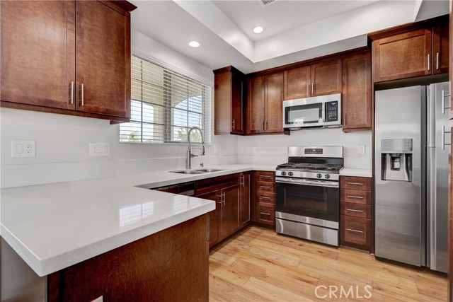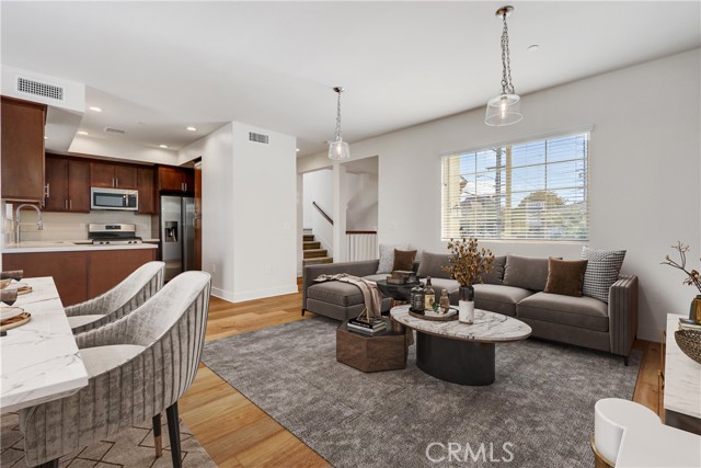 Discover contemporary coastal living in this newer move-in ready detached townhome nestled within Torrance’s Arlington Pointe community. Built in 2019, this modern residence combines clean, stylish design with everyday comfort, offering a thoughtfully planned layout ideal for effortless living. A gated front patio sets a welcoming tone—perfect for morning coffee, casual al fresco dining, or unwinding with a good book. Inside, the main level features hardwood flooring, recessed lighting, and an open-concept cook’s kitchen appointed with European-style cabinetry, quartz countertops, stainless steel appliances (including a Samsung refrigerator), and a microwave range hood. The kitchen flows seamlessly into the spacious living area, which opens to a private covered balcony—an ideal extension of your living space. This level also includes a conveniently located powder room and a laundry closet equipped with a stacking LG washer and dryer. Upstairs, the primary suite offers serene views of the Palos Verdes hills, dual walk-in closets, and a private en-suite bath with dual sinks. Two additional bedrooms and a full hall bath provide versatility for guests, remote work, or creative pursuits. Additional highlights include central heat and A/C, dual-pane windows, a tankless water heater, and direct access to a generous 3-car garage. Enjoy the South Bay lifestyle with the benefits of a private, newer-construction community located within the highly rated Torrance school district, and close proximity to shopping, dining, parks and more!