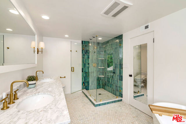 Prime Sherman Oaks 4 bedroom, 4 bathroom traditional home recently redone with a modern farmhouse style. This light and bright home is equipped with skylights, a formal living room, separate dining room off the Chef's kitchen with additional breakfast nook/pantry. The over-sized family room with vaulted ceilings boasts a separate wet bar perfect for entertaining or for family gatherings with sliders opening up to the grassy yard and sparkling pool. The downstairs en suite bedroom is perfect for guests and no detail was spared in the build out of closests. The over-sized master has 2 large walk in closests and a private balcony overlooking the pool. The other two bedrooms feature a shared jack and jill bathroom with marble shower and abundant closet space. This perfect bright traditional family home is now available in a coveted, quiet area of Sherman Oaks