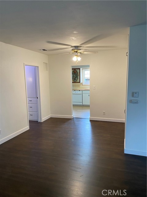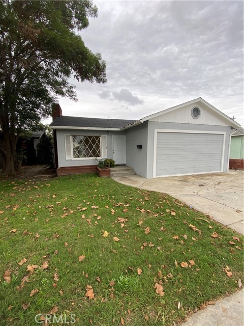 This adorable 2 bed 1 bath starter home is situated in the heart of Orange County. Convenient to shopping, amusement parks, restaurants, hospitals, airports and freeways. Interior features include a spacious living room that offers solid oak flooring, gas or wood burning fireplace, forced air heating and smooth ceilings. The galley kitchen has been freshly painted with new laminate flooring tile counter tops and a recently installed dishwasher. Both bedrooms are very spacious offering plenty of closet space, fresh paint, ceiling fans and nicely appointed hardwood and laminate flooring. The original 2 car garage is currently set us as an unpermitted Additional Dwelling Unit but can easily be converted back to a 2-car garage. This home also offers a very spacious private backyard that has a concrete patio area that can be accessed from the living room.