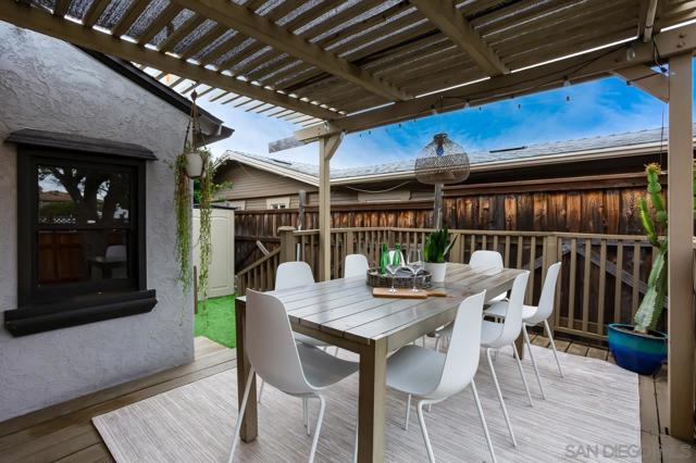Classic bungalow on a corner lot in the heart of Normal Heights. This 2-bedroom, 1-bath home offers 698 sq ft of well-designed living space, featuring a bright living room with large picture windows, a dining area, and hardwood floors throughout. The kitchen includes white cabinetry and maroon vintage tile accents, and the updated bathroom features subway tile, a new vanity, and a new light fixture. A French slider opens to a deck with pergola, perfect for outdoor dining. The private backyard includes turf for easy upkeep and a mature Elm tree that provides natural shade and character. Additional features include updated modern lighting, new interior paint, and a 1-car attached garage with driveway parking. Close to Adams Avenue shops, restaurants, and cafés in one of San Diego’s most walkable neighborhoods. Classic bungalow on a corner lot in the heart of Normal Heights. This 2-bedroom, 1-bath home offers 698 sq ft of well-designed living space, featuring a bright living room with large picture windows, a dining area, and hardwood floors throughout. The kitchen includes white cabinetry and maroon vintage tile accents, and the updated bathroom features subway tile, a new vanity, and a new light fixture. A French slider opens to a deck with pergola, perfect for outdoor dining. The private backyard includes turf for easy upkeep and a mature Elm tree that provides natural shade and character. Additional features include updated modern lighting, new interior paint, and a 1-car attached garage with driveway parking. Close to Adams Avenue shops, restaurants, and cafés in one of San Diego’s most walkable neighborhoods.