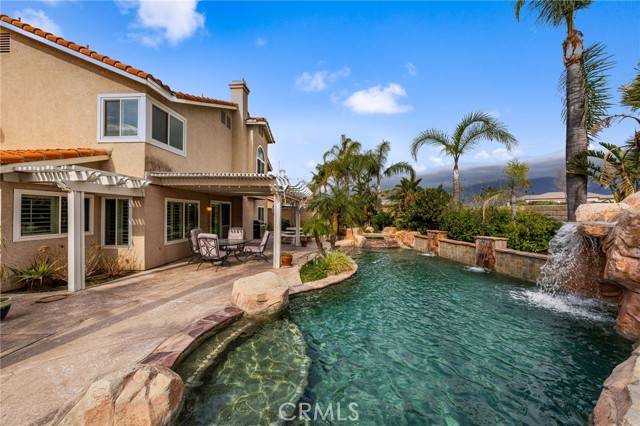 This stunning turnkey two-story home checks all the boxes! Featuring four bedrooms plus an office and loft, this spacious residence offers versatility and comfort. With three full baths and a three-car garage, there’s room for everyone. Step through the formal entry into the living and dining room combination, creating an elegant space for entertaining. Separate from this area, the open-concept kitchen, family room, and breakfast nook offer the perfect gathering space for everyday living. The chef’s kitchen boasts a center island, granite countertops, a walk-in pantry, and plenty of counter space, all flowing seamlessly into the family room with a cozy fireplace. A downstairs bedroom adds convenience, while the upstairs office can easily be converted into a fifth bedroom. The primary suite is a true retreat, featuring a walk-in closet, en suite bath with a soaking tub, separate shower, and dual sinks. The backyard is an entertainer’s dream, complete with a Sparkling PebbleTec pool and spa with a waterfall, a covered patio, and beautifully designed hardscape. This home also includes solar panels for energy efficiency. Location is everything, and this home delivers! Nestled near top-rated schools, major highways, and an abundance of shopping and dining options, including the premier Victoria Gardens Mall, you’ll have everything you need at your fingertips. From high-end restaurants to boutique shopping and entertainment, this is more than a home—it’s a lifestyle. Don’t miss your chance to own this exceptional property—opportunities like this don’t come often!