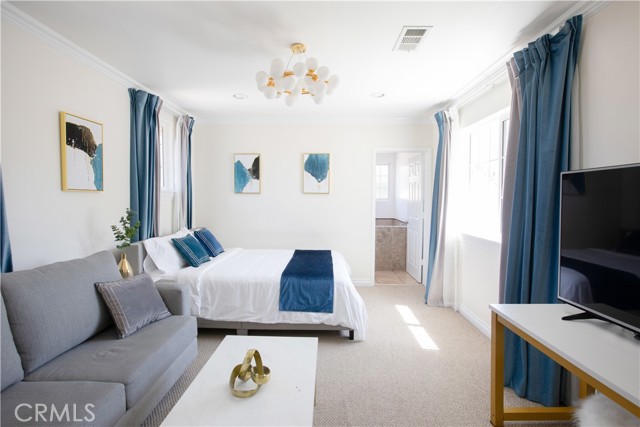 This spacious front unit two-story home is situated in a peaceful and highly convenient neighborhood near Arcadia, San Marino, and the Chapman Woods area. Upon entering, you are welcomed by a bright and inviting living room that flows seamlessly into the open dining and family area, creating a comfortable and relaxed atmosphere. The well-appointed kitchen features granite countertops and practical design elements that enhance daily living. The first floor includes a private bedroom suite, ideal for guests, extended family, or use as a home office, along with a conveniently located powder room. Upstairs, the home offers a generous primary suite, two additional bedrooms, and a hallway bathroom, with a functional and well-balanced layout. The entire home comes fully furnished, making the move-in process effortless. Additional features include dual-pane windows, crown molding, engineered wood and tile flooring, as well as an attached two-car garage and in-unit laundry. The location is a major highlight—directly across from Willson Middle School. Everyday conveniences such as restaurants, grocery stores, medical facilities, and public transportation are just minutes away. The home is also close to Caltech, Pasadena City College, the Huntington Library, Santa Anita Mall, the Arboretum, and Eaton Canyon. With its excellent layout, convenient location, and fully furnished, move-in ready condition, this front unit offers an ideal living experience in Pasadena. 3455 (front unit) and 3457 (back unit) can be leased separately or together—perfect for multi-generational living, shared housing, or tenants seeking extra space.