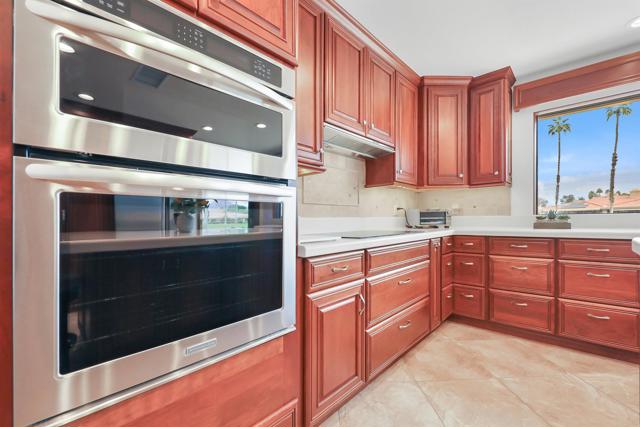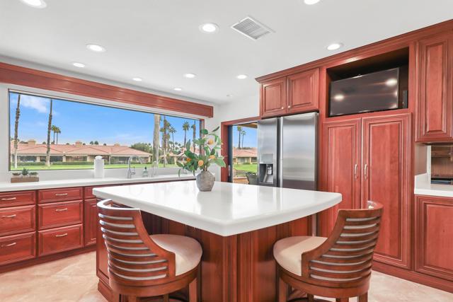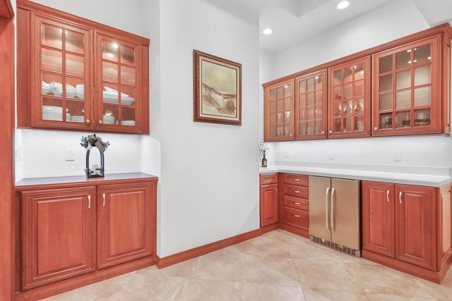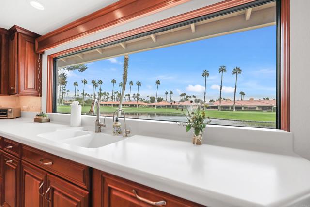 Stunning lakefront, golf-course property in the premier location of Chaparral Country Club! This beautifully renovated 3-bedroom, 3-bath condo offers panoramic views of the lake, tee, and green on the 9th hole. Thoughtfully redesigned from top to bottom within the last six years, no detail or expense was spared! Every finish is timeless, high-end, and impeccably curated. Enjoy 8-foot raised ceilings, ceramic tile flooring, a paver driveway and walkway, and an expansive tiled patio perfect for taking in the surrounding beauty. The gourmet kitchen features a dramatic 10-foot picture window, Corian countertops, a large island with custom roll-out storage, KitchenAid appliances, a state-of-the-art Samsung refrigerator, and a custom glass pocket door leading to the patio. The converted atrium offers additional living and entertainment space with a wine fridge, ice maker, glass-door cabinetry, and interior lighting. All bathrooms are luxuriously redesigned with spacious walk-in showers and premium fixtures. Additional upgrades include energy-efficient Pella windows with high-end shutters, remote-controlled roller shades on the living room sliders, a tankless water heater, NEW HVAC and a fully tiled 3-car garage PLUS a dedicated golf cart garage. Chaparral Country Club amenities include an 18-hole Ted Robinson Sr.–designed golf course, 21 pools and spas, tennis and pickle-ball courts, a fitness center, and a clubhouse with dining and lounge options. This is a rare opportunity to own a fully renovated, lakefront golf-course home in one of the most coveted locations in the community. A must-see!