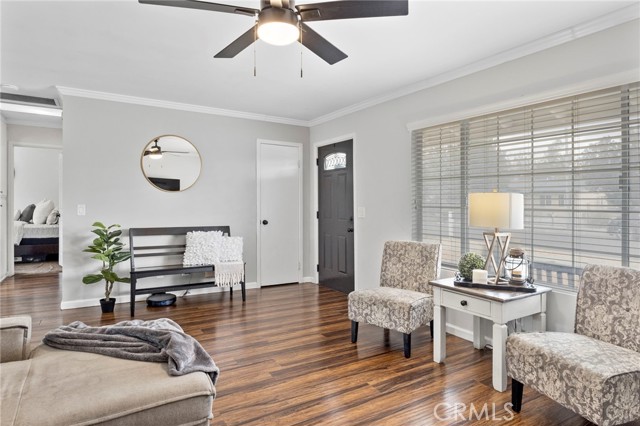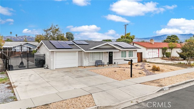 Cozy Move-In Ready Home with PAID-OFF SOLAR! Welcome to this beautiful 2-bedroom, 1-bath home that’s perfect for first-time buyers or anyone looking to enjoy comfort and convenience. This cozy home features laminate wood floors throughout the kitchen and living room, creating a warm and inviting feel. The kitchen is practical and well-kept, offering everything you need without the excess, ideal for simple, everyday living. The primary bedroom includes French doors that open directly to the backyard patio, adding a nice indoor/outdoor touch and making the space feel bright and welcoming. Step outside to a large backyard that’s perfect for gatherings, BBQs, and entertaining plenty of room to relax, play, or customize to your liking. The property also includes a long driveway with RV PARKING, a two-car garage with laundry hookups, and lots of room for vehicles or storage. Enjoy peace of mind with PAID-OFF SOLAR, a NEW ROOF, major upgrades already completed for you! This well-maintained home is truly move-in ready and won’t stay on the market for long. Come see the potential and comfort this property has to offer!