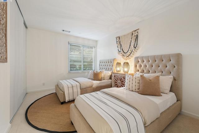 Surrounding trees create a serene setting for this sought after one-story, Model A Townhome in Bay Farm Island's Islandia community. Move-in ready, this home has been updated to reflect current design trends and amenities for comfortable living. The great room with vaulted ceiling is infused with an abundance of natural light. The living room area with decorative fireplace, access to the courtyard, and adjacent dining area, certain to become a favorite gathering area. The kitchen has been updated with quartz countertops, new stainless steel appliances & sink. An eat-in area with access to the private courtyard, make this kitchen perfect for meal preparation and entertaining. An ensuite bedroom with walk-in closet, and 2nd bedroom and bath, spaces for pampering and relaxation at the end of the day. Additional features include an interior laundry room, and detached 2-car garage. In close proximity to highly ranked schools, Harbor Bay Ferry & Business Park, Corica Park Golf Course and bay trails, makes this a perfect place to call home. We look forward to your visit! Alameda ~ Island Living at its best!