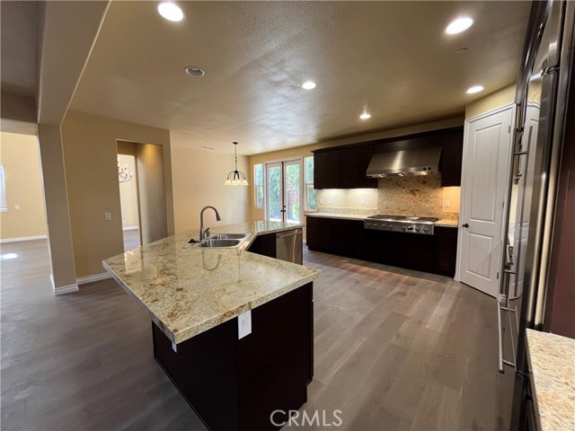Elegance and comfort come together in this stunning 5-bedroom, 4-bath home. The gourmet kitchen is an entertainer’s dream, featuring a large center island, sleek granite countertops, and premium Stainless Steel GE Monogram appliances—including a 48” 6-burner cooktop, double ovens, dishwasher, and microwave. The open-concept design flows seamlessly into the spacious family room, complete with a cozy fireplace and an extended wet bar, ideal for hosting gatherings. The living room offers an additional retreat with a 42” corner fireplace and beautifully crafted French doors that fill the space with natural light. The private primary suite impresses with coffered ceilings, its own fireplace, a generous walk-in closet, and a luxurious spa-inspired bathroom. Upstairs you’ll find three additional bedrooms—one with an en-suite full bath and two connected by a Jack-and-Jill bathroom. Recessed lighting enhances the home throughout, while the formal dining room showcases an elegant coffered ceiling. A main-level bedroom and bathroom provide excellent flexibility for guests or multi-generational living. Additional features include a laundry room with a sink and a home security system. The home is conveniently located near shopping, dining, award-winning schools, and easy freeway access. Owner pays for gardener; refrigerator included. Pet policy available upon request. One-year lease term. Experience refined living at its finest.