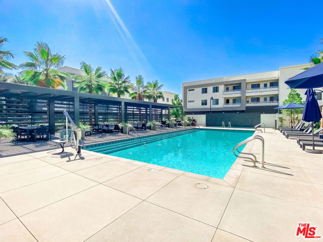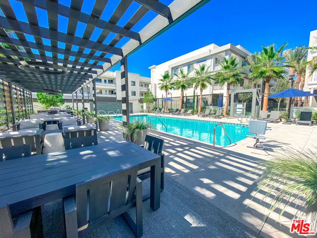 Top floor unit in the newer luxury condominium "Alia at A Town," located in the heart of Anaheim's Platinum Triangle. The open living layout features stylish finishes, a gourmet kitchen with an extra large center island, ample cabinet space, recessed lights in the kitchen and living room, and a spacious balcony accessible from the living room. The primary suite offers a generously sized bedroom, an en suite bath with dual sinks, and a large walk-in closet with built in shelving. All appliances are newer, including stainless steel stove, refrigerator, dishwasher, microwave, central air and heat, washer, and dryer in the unit. Two private parking spaces are included in the garage, and the building offers secure entry with key fob access. Community amenities feature a beautifully maintained resort style pool surrounded by modern lounge seating and shaded cabanas, along with a barbecue area that is perfect for entertaining friends and family. The property is close to Angel Stadium, the train station, Disneyland, Old Towne Orange, outlet shopping, Chapman University, hospitals, restaurants, and stores. Available to show on 12/2, so please make an appointment for a showing.