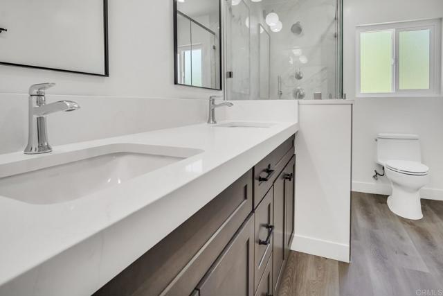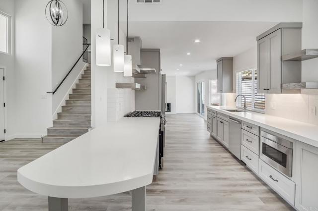 Welcome to your beautifully renovated Mira Mesa retreat! Every inch of this charming home has been thoughtfully upgraded to deliver modern comfort and effortless living. From the brand-new AC and heating system to the new washer, dryer, and more—nearly everything here is fresh and new. Step into the stunning kitchen, featuring sleek countertops, contemporary cabinetry, and state-of-the-art appliances. Just beyond, the bright and spacious living area is filled with natural light, offering the perfect setting for relaxing nights in or hosting friends and family.The main level includes a versatile bedroom and full bathroom—ideal for guests, multigenerational living, or anyone seeking convenient ground-floor accessibility. Upstairs, the primary suite provides a peaceful escape with a generous closet and modern finishes. Two additional bedrooms share a stylish Jack-and-Jill bathroom complete with a double vanity and updated fixtures. Light, airy, and serene, this home offers the ideal backdrop for unwinding after a long day. Outside, the beautifully landscaped yard creates your own private oasis—perfect for soaking up the California sunshine or enjoying weekend gatherings. Just minutes from Highway 15, you’ll love the unbeatable access to local restaurants, theaters, shopping, and everyday conveniences. Don’t miss your chance to experience this truly turnkey home!