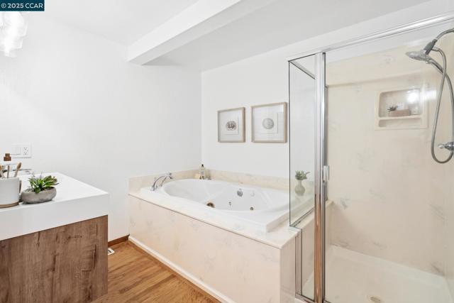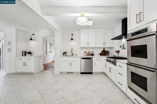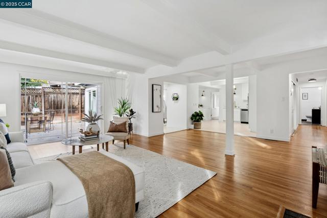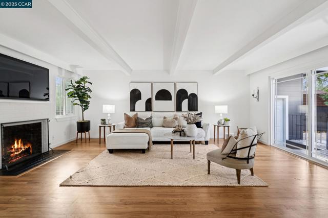 Set in a prime Lafayette location, this inviting single-story home offers comfort, style, and convenience. Step inside to an open concept layout with hardwood floors throughout, offering a warm and cohesive feel. An updated kitchen includes quartz countertops, stainless steel appliances, and new herringbone-patterned tile flooring. The spacious dining area sits beside a striking floor-to-ceiling brick fireplace, creating a focal point for everyday living and gatherings. Fresh interior and exterior paint enhance the property’s clean, move-in-ready appeal. Multiple decks provide versatile spaces for entertaining or relaxing outdoors, surrounded by mature trees. Close to town, trails, and award-winning schools, this home combines thoughtful updates with an ideal location.