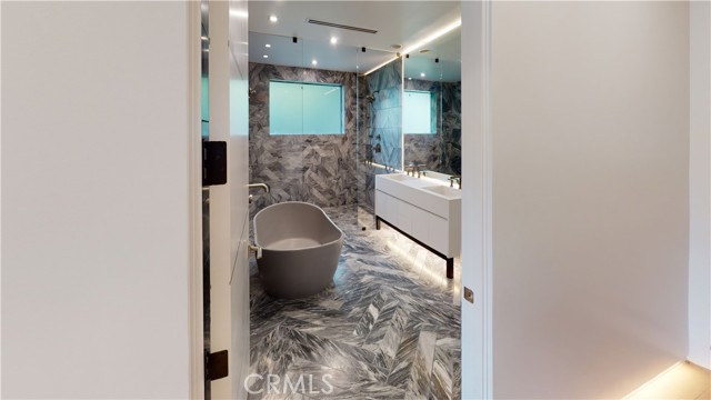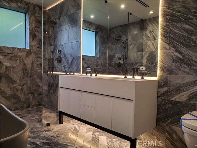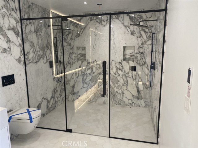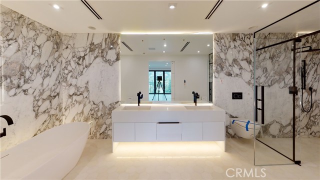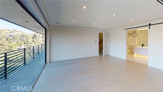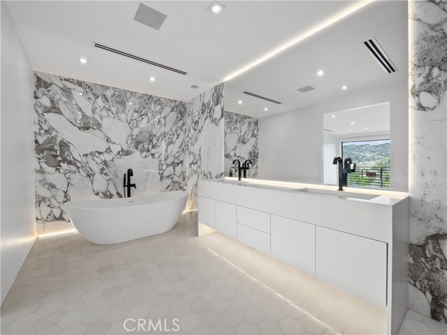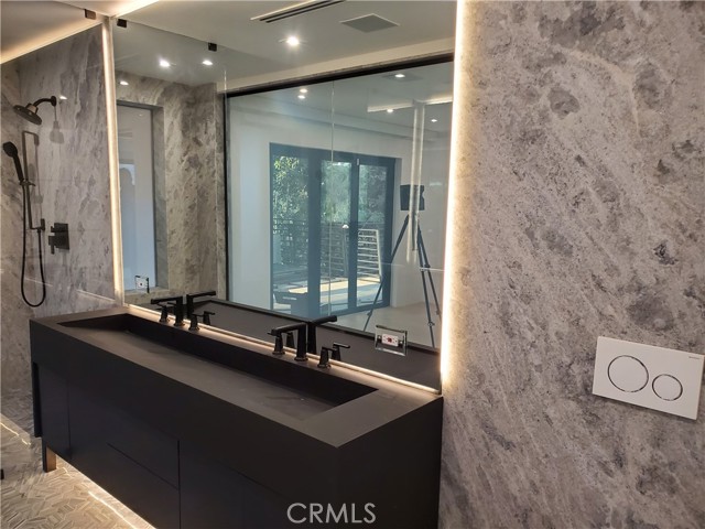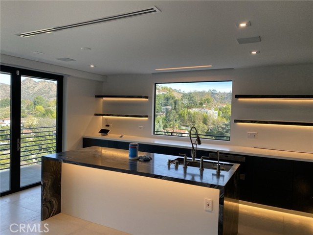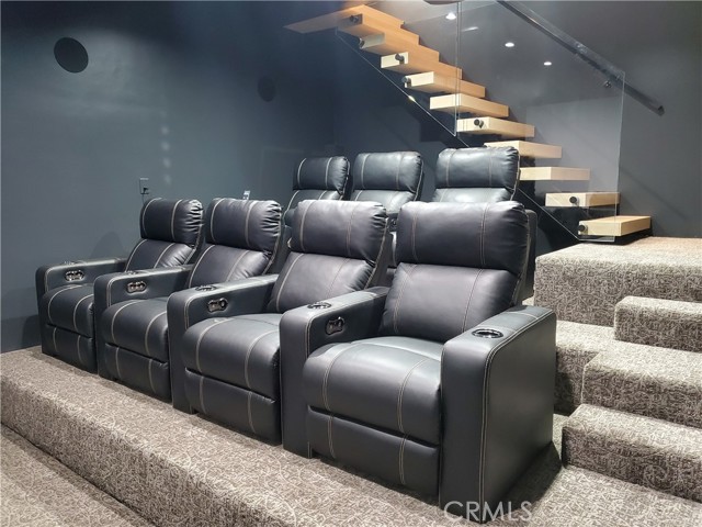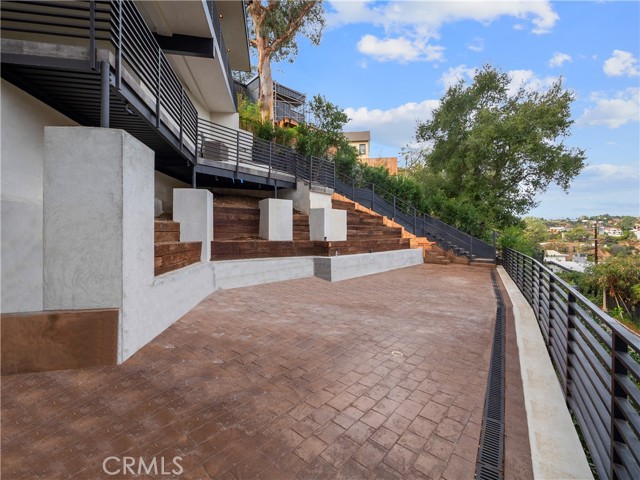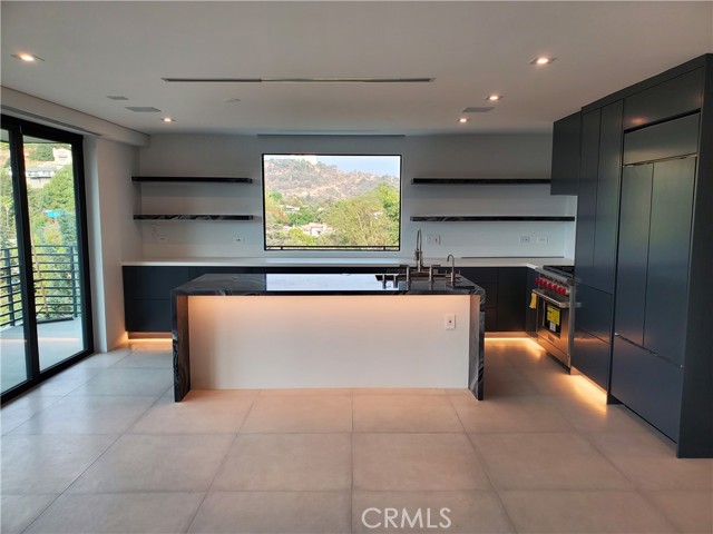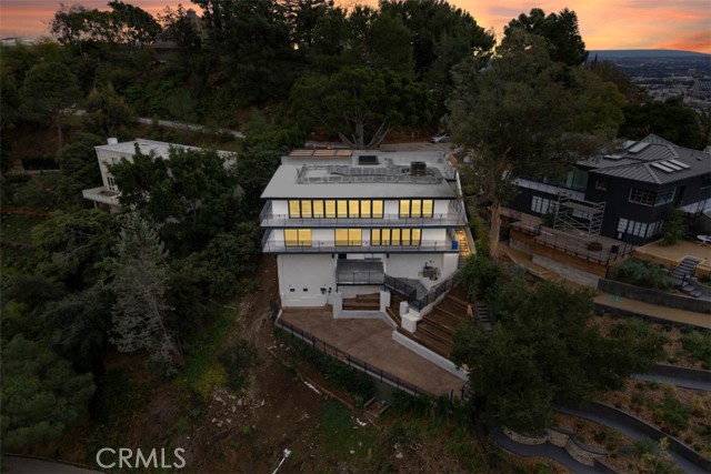 VIEWS, VIEWS, VIEWS! Presenting an exceptional contemporary smart home offering sweeping panoramic views of city lights, the Hollywood Sign, and the Griffith Observatory. Perched on a downslope with wrap-around terraces on each level, this residence combines sophisticated design with seamless indoor–outdoor living. The entry welcomes you with a custom-built pivot door and floor-to-ceiling glass bi-fold doors that flood the home with natural light and create an effortless transition to the outdoor spaces with breathtaking views. The gourmet kitchen is equipped with marble countertops, state-of-the-art smart appliances, custom cabinetry, and an elegant waterfall marble island. This level also includes a versatile bedroom or office, featuring a privacy switch-light glass bathroom and a custom concrete trough sink. The second level showcases a luxurious primary suite complete with a marble bathroom, a custom soaking tub and a custom walk-in closet. Two additional bedrooms with impressive city views, a full marble bathroom with a concrete trough sink and soaking tub, and a dedicated laundry area complete this floor. The lower level is designed for entertainment, featuring a fully equipped theater room with advanced audio-visual technology. From here, access the backyard retreat, ideal for relaxing while enjoying the expansive city-light views. The outdoor space includes a built-in BBQ, enhancing the home’s entertainment capabilities. Additional features include full smart-home integration with a Control system, surround sound, a high-end security system, and a two-car garage equipped with a Tesla charger. Located just moments from premier shopping, dining, Griffith Park, and more, this property offers an unparalleled blend of luxury, convenience, and modern living.