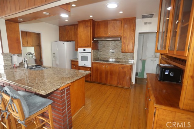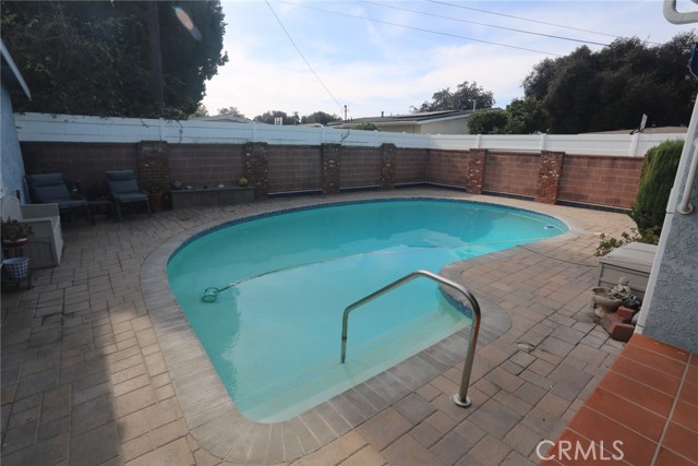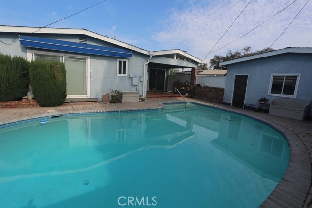 Great Area. 3 Bedroom, 1.75 Bathrooms, Living Room and Family Room. Built-in Pool in Private Backyard. Approximately 1574 Sq. Ft. Pool in backyard is separated from Double Garage Detachedand Fenced in Driveway for Safety and Privacy. Lot Size is Approximately 6689 Sq. Ft. Entry way at front door has an entry area with coat or utility closet. Enter into the Living Room with Brick wood burning fireplace, open beam ceilings and wood plank flooring. Mini-Split and Heat Pump for cooling and heating. Family Room has plank laminate flooring and is adjacent to the Living Room. Also has Minii-Split A/C and Heat Pump unit and Open Beam Ceiling. Patio Doors allow access to the Backyard which Includes a Built-In Pool, small Patio and Fenced in Private Yard. Kitchen Opens to Family Room. Built-In Electric Stove Top, Built-In Oven, Dishwasher and Granite Counter Tops, Service Porch Off of Kitchen with Door Access to Backyard & Pool. Pool has been Resurfaced Recently along with new Pool Pump. Master Bedroom at Rear of House with access to Pool. Also has a Mini- Split Coolin and heating unit. An Electric Awning that extends to the Approximate Edge of the pool shades the rear of the Master Bedroom. Almost Completely Tiled 3/4 Bath in master Bedroom. Has Skylight and storage with hamper behind door. Master Bathroom Has a Bidet plus a Toilet. HALL Bath hs a Toilet LID Bidet Two Additional Bedrooms Serviced by a Nice Hall Bath Centrally Located. The two windows in the Living Room and the 3rd front Bedroom have power switches for the Blinds. Roof is Approximately 5 Years old. House was fumed in 2022. Vinyl Gated Access to the Backyard. Additional gate for Pool Access. Solar Panels with no Lease to Transfer. No Backup Batteries. Also has Forced Air Heating. Property was Tented for Termites in 2022 and on a service contract every 1/4 until recently.