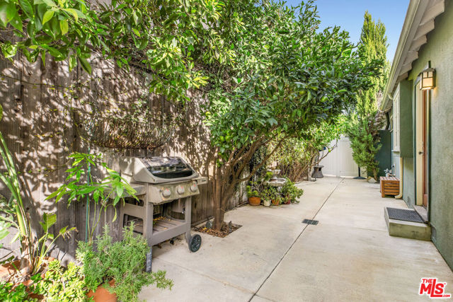 Rare gem of Valley Village! Tucked behind lush, mature landscaping, this extraordinary property feels every bit like a single-family home. Follow the stone pathway through a beautifully manicured garden to your private entrance adorned with a trickling fountain and charming Dutch door, the first of many distinctive details that make this residence truly unforgettable. Inside, sunlit rooms flow effortlessly across stunning hardwood floors, anchored by a massive picture window and charming stone fireplace. Custom built-ins create endless function, storage and charm in every space while the in ceiling surround sound system helps to create atmosphere throughout the entire home. The thoughtfully designed chef's kitchen is both elegant and functional, boasting new high-end appliances, a walk-in pantry with a powered appliance bar, generous countertop outlets, and a hidden ice maker behind custom paneling. Designer tile, upscale fixtures, and warm lighting add layers of sophistication. A skylight over the dining area fills the home with natural light, enhancing the open, airy feel. The primary suite is a tranquil retreat featuring a cozy sitting nook and a large single-pane picture window framing the lush greenery and a graceful Japanese maple. The inviting bed alcove enhances the feeling of serenity, while the spa-inspired bathroom offers a deep soaking tub, separate shower with river rock flooring, and a spacious custom walk-in closet with laundry discreetly tucked inside. A second skylight in the primary bathroom brings in soft, natural light to complete the spa experience. The guest suite feels like its own private haven, with a pocket door creating separation from the main living area. A mini foyer with built-in storage leads to a fun guest bath with a luxurious shower. A custom built-in desk and shelving make this space equally ideal for guests or remote work, with views of the gardens and fruit trees. From the light-filled living room, French doors open to a private stone patio, the heart of the outdoor sanctuary. Dine al fresco beneath the stars or relax to the soothing sound of three serene fountains scattered among winding stone pathways. The grounds are framed by towering ficus trees and romantic flowering vines, creating a secluded, storybook atmosphere. Mature and abundant lime, lemon, and mandarin trees provide color, fragrance, and a touch of orchard charm year-round. A separate single-car garage has been smartly converted into a versatile office and gym space, freshly painted and equipped with a wall-unit AC, while still allowing for vehicle parking if desired. There's also a secure gate leading to a private back entrance with convenient access from the rear parking area, the perfect blend of privacy and practicality. Seller improvements: 1 year old roof on both main home and garage, new refrigerator and dishwasher, new water heater, converted garage space.