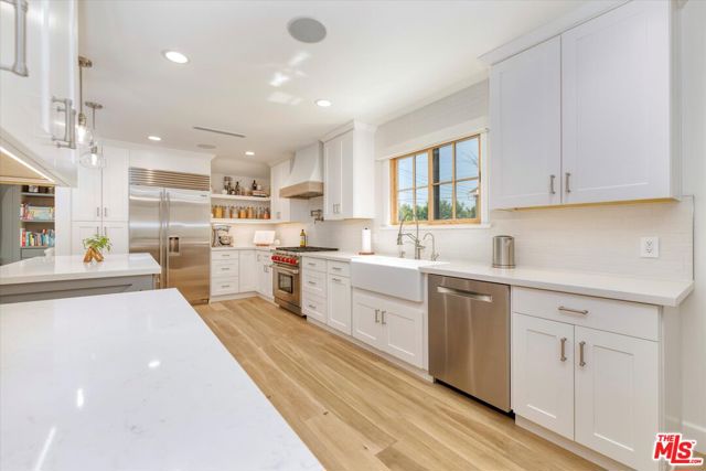 This fully remodeled (2021/2022) Modern Farmhouse is a true masterpiece, seamlessly blending exquisite designer finishes with cutting-edge smart home technology, all located in the heart of Burbank.As you enter, you are welcomed by an open-concept living space defined by gorgeous wide-plank European oak floors, custom wall treatments, and beautiful Andersen windows. The chef's kitchen is a culinary dream, featuring a farmhouse sink, shaker cabinetry, quartz countertops, and a premium suite of appliances, including a Sub-Zero refrigerator and Wolf 6-burner range.The luxurious primary suite is a private retreat, distinguished by a shiplap ceiling and French doors, leading to a spa-inspired bath complete with dual vanities, a deep soaking tub, and premium Brizo fixtures. The home's daily living is elevated by comprehensive smart systems, including whole-home audio, a Nest thermostat, six exterior cameras, remote-controlled window treatments, and an EcoWater softener. Beyond the aesthetic appeal, peace of mind is guaranteed with major system upgrades, including new copper plumbing, an upgraded roof, HVAC, and a 200 amp electrical panel.Outdoor amenities include landscape lighting, a SunSetter retractable umbrella, and a large, finished two-car garage/flex space equipped with 12-foot tri-panel glass doors and two EV charging outlets. This unparalleled location on a charming, tree-lined street provides immediate access to Burbank's top-rated schools, unique city services, and unrivaled proximity to world-class studios like Disney, Warner Bros, and Netflix, offering the perfect blend of luxury and convenience.