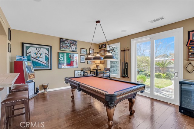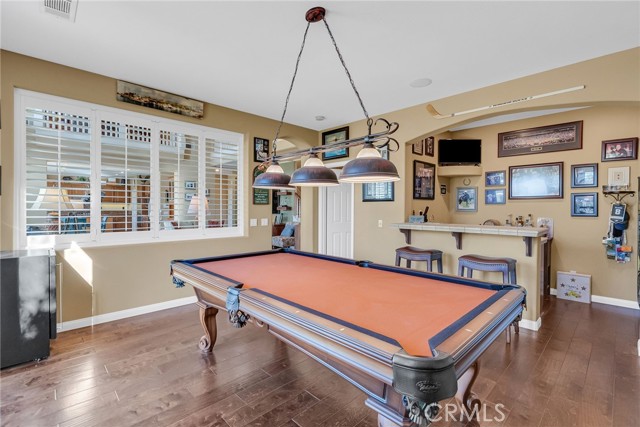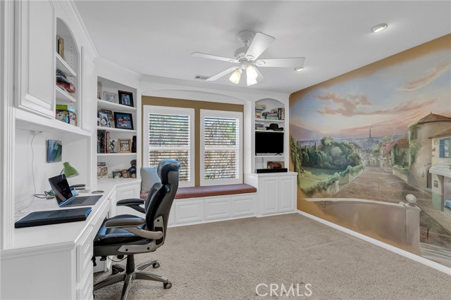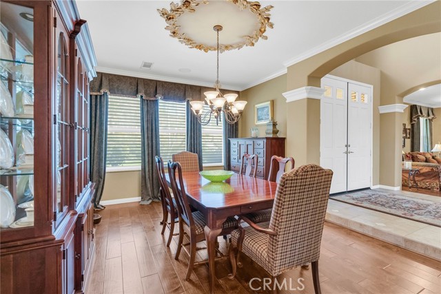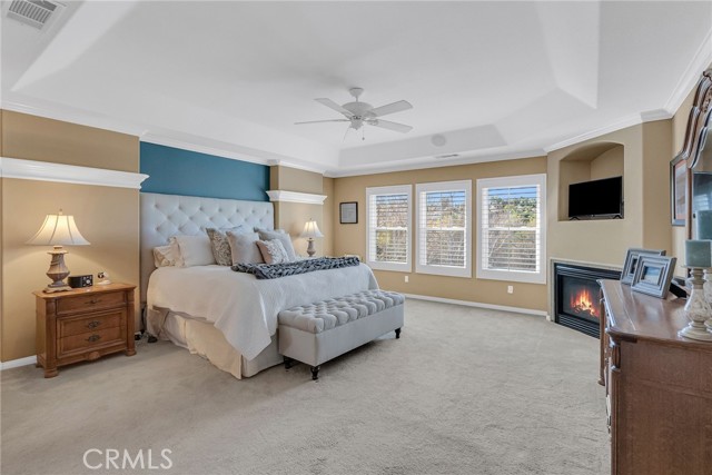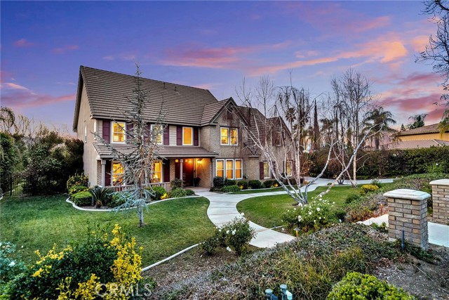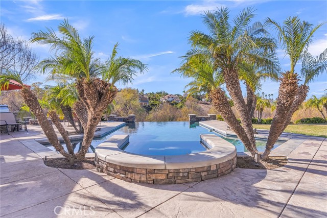 CRYSTAL RIDGE ESTATES-Welcome to 14143 Ashton Lane, a distinguished residence nestled in the serene landscapes of Riverside, CA. This popular plan 3 model offers a harmonious blend of luxury and comfort, spanning an impressive 3,700 square feet. Upon entering, you are greeted by the warmth of walnut wood flooring that flows seamlessly throughout the formal living and dining rooms, setting the stage for refined gatherings. The heart of the home is the expansive family room, adorned with a cozy fireplace, which effortlessly connects to a game room and bar area, perfect for entertaining. The gourmet kitchen, replete with modern amenities, serves as a culinary haven for the discerning chef. Retreat to the master suite, where a private fireplace adds a touch of romance. The updated master bathroom features a large shower and custom closet organizers, providing a sanctuary of relaxation. Three additional bedrooms offer ample space for family and guests, while a loft office space upstairs caters to your professional needs.Step outside to an entertainer's dream backyard, where a vanishing edge pool offers breathtaking mountain views, creating a tranquil oasis. The expansive lot of over 30,000 square feet ensures privacy and endless possibilities for outdoor enjoyment. 4 car garage, wtih epoxy flooring and ample storage space. This home is a testament to sophisticated living, with built-ins throughout that enhance both form and function. Discover the epitome of elegance at 14143 Ashton Lane.