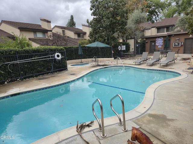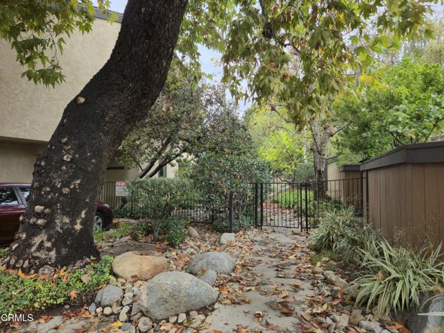 Fabulous Pasadena location close to Old Town & great restaurants. This home has high ceilings and very large rooms. The grounds are like an oasis with beautiful landscaping throughout and a nice pool in the middle of the complex. Adjacent the living room features huge windows and sliding glass doors that enter the patio where one can relax, entertain and gaze upon the lovely tree. Upstairs features the master suite with 3 huge closets and a bathroom perfect for any person or couple. Main floor has hardwood flooring and from stairs up is brand new really nice carpet. Another bedroom has a great built in storage and spacious closet. 3rd bedroom is a theater complete with ceiling projector, huge screen, and all the hifi audio/video equipment. It can easily be used as a bedroom. AC is brand new.