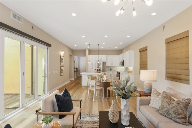 Discover a rare opportunity to own a beautifully upgraded single-story Brio home by Shea Homes in Irvine’s highly sought-after Great Park/Beacon Park community. This immaculate corner-unit residence offers 3 bedrooms, 2 bathrooms, and a spacious private patio/courtyard, all within a thoughtfully designed single-level layout that blends modern elegance with effortless comfort. Step inside to an inviting open-concept living space enhanced by stylish wood flooring, tall ceilings, abundant natural light, and custom window blinds throughout. The airy living area flows seamlessly into the contemporary kitchen featuring quartz countertops, upgraded cabinetry, and premium finishes—perfect for both daily living and entertaining. A versatile third room provides the ideal option for a bedroom, home office, or creative studio. Experience true indoor-outdoor living with a serene courtyard where matching wood pattern tile flooring creates a smooth connection between interior and exterior spaces. The attached two-car garage offers direct access and generous storage. Living in Beacon Park feels like a five-star resort. Community amenities include multiple pools and spas, outdoor kitchens with BBQ grills, pizza oven, smoker, lush lawns, playgrounds, club rooms, and sports courts, plus expansive fields for basketball, beach volleyball, and soccer. Wide streets and plentiful guest parking ensure everyday convenience. Located within the award-winning Irvine Unified School District, this home is a short 5-minute walk to Beacon Park School and is zoned for the highly acclaimed Portola High School. Ideally situated near world-class dining, shopping, parks, freeways, beaches, John Wayne Airport, and South Coast Plaza. Move-in ready and meticulously maintained, this exceptional home offers incredible value in one of Irvine’s most desirable master-planned communities. Don’t miss this chance to experience resort-style living at its finest!