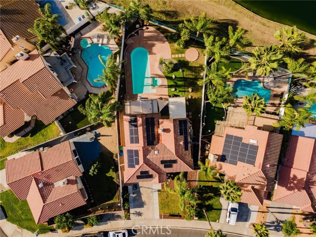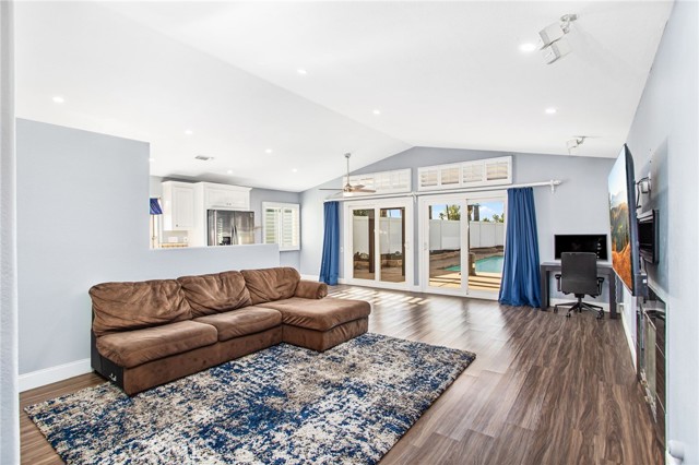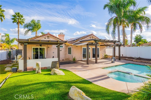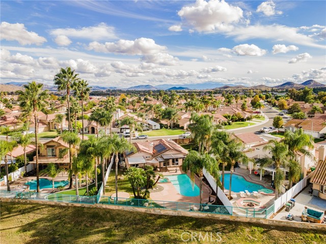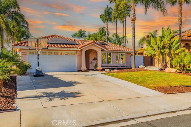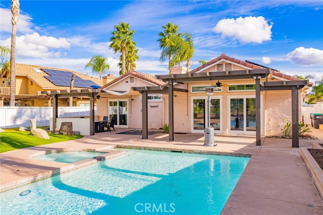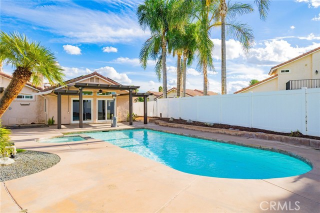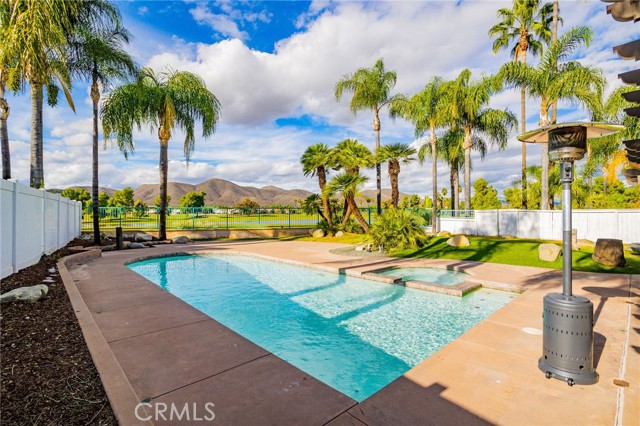 Welcome to this beautifully maintained Menifee Lakes pool home, offering stunning golf course and hill views from one of the community’s larger lots. With 3 bedrooms, 2 bathrooms, and approximately 1,329 square feet of comfortable living space, this home blends indoor comfort with outdoor enjoyment. Step inside to a light and bright interior accented by laminate flooring, recessed lighting, and a cozy fireplace in the living room. The newer windows fill the home with natural light while also showcasing the scenic surroundings. The open kitchen features tile countertops, stainless steel appliances, and a functional layout perfect for everyday living or entertaining. The primary suite offers privacy and an en-suite bathroom, while the secondary bedrooms are generously sized and versatile for guests, work, or hobbies. Additional features include newer HVAC, solar panels for energy efficiency, and a 2-car garage with attic access for extra storage. Outside, the backyard is where this home truly shines. Enjoy a sparkling pool, covered patio, and unobstructed views of the rolling hills and lush fairways—an ideal setting for relaxing afternoons or gathering with friends and family. Located in the sought-after Menifee Lakes community, residents enjoy nearby parks, golf, walking paths, and convenient access to shopping, dining, and schools. This home is move-in ready and perfectly positioned to enjoy the best of Southern California living.