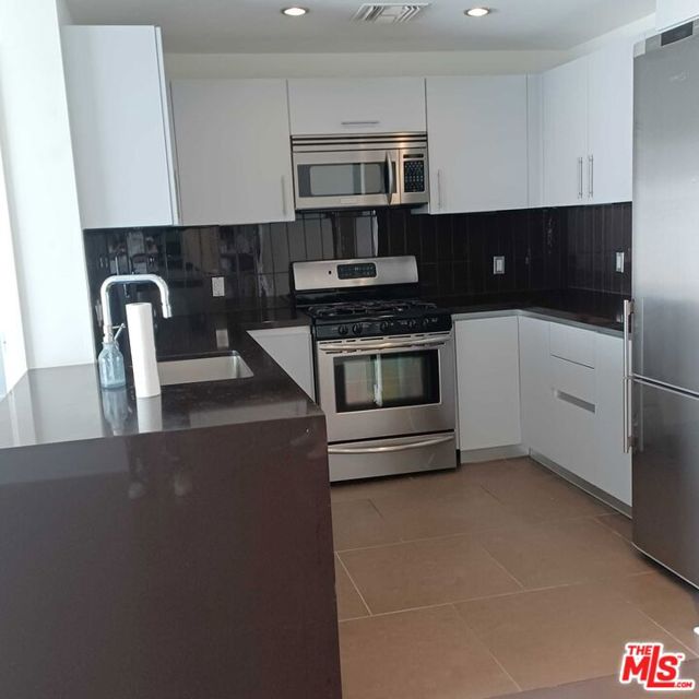 Prime West LA location amidst trendy restaurant and close to Beverly Hills,UCLA, Century City, Brentwood and Santa Monica. This amazing very bright Penthouse condominium has only one shared wall and boasts views from a large balcony off the living room. Renovated with fresh paint and new cabinets in kitchen and bathroom. The modern open floor plan features an open Kitchen with Caesar stone counters, stainless steel appliances, refrigerator, stove, microwave. There is also a laundry closet with a large upgraded Washer /Dryer. Prewired for internet, cable and security. There are 3 resort like courtyards with fireplaces and fire pit. The lease includes a storage locker and 2 very convenient side by side parking spaces in gated garage. There are plenty of guest parking spaces and bike racks in the garage. The Building has 24 hour security surveillance in the garage! Rent includes water and gas!