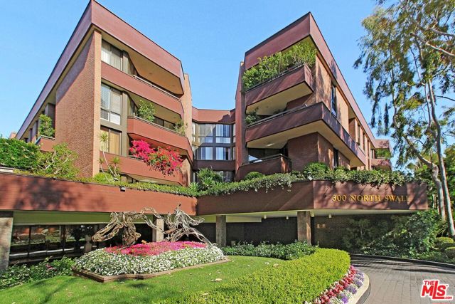 A distinguished and one-of-a-kind residence, this premier corner home is the largest two-bedroom plus den plan at the coveted IV Seasons Condominiums in Beverly Hills. Nestled along a serene, tree-lined street, the residence embodies formal elegance throughout, blending timeless traditional detailing with bespoke craftsmanship and an exceptional indoor-outdoor lifestyle. The grand living room sets the tone with its beautiful fireplace, while the adjacent den features custom library built-ins and rich wood flooring that flows seamlessly throughout the home. Floor-to-ceiling windows invite abundant natural light and frame tranquil treetop views, creating a warm and refined ambiance. This unique floor plan opens to an exceptionally large private courtyard terrace and landscaped potted gardens; an exclusive outdoor sanctuary ideal for entertaining, quiet mornings, or intimate gatherings. Designed for elevated living, the formal dining room provides a classic setting for hosting, while the thoughtfully appointed kitchen and bright breakfast room showcase verdant park vistas. The versatile den transitions effortlessly into a study, library, or media space, enriched by the home's custom millwork and artisanal finishes. The primary suite is a serene, traditional retreat featuring dual custom walk-in closets and a spa-like bathroom with a sunken soaking tub, separate glass-enclosed shower, and refined, timeless detailing. The secondary bedroom suite continues the bespoke aesthetic with its own tailored closet and elegantly appointed bath. An in-unit laundry room adds modern convenience to the home. Residents of IV Seasons enjoy premier full-service amenities, including 24/7 doormen, valet parking, a newly renovated entry foyer, upgraded corridors, a community courtyard pool and spa, a fitness center, and dedicated storage. Just moments from the finest shopping, dining, and cultural experiences in Beverly Hills and across the Westside, this exceptional residence offers a rare blend of privacy, sophistication, and enduring elegance.