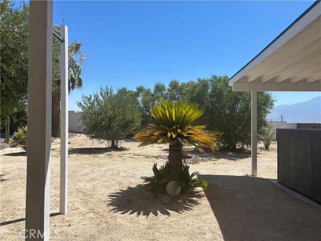 Rancho del Oro...NO HOA, FAMILIES WELCOME - 3 Bed 2 Bath with converted bedroom can easily be converted back to the 3rd bedroom. Swim Spa with resistance jets for exercise or lounging and Covered Patio in rear with room for ADU (buyer to confirm with City). The home offers sweeping mountain views from the backyard, especially stunning at sunset, for a daily dose of desert magic. This property offers tranquility and privacy, while still being just 20 minutes from downtown Palm Springs, 30 minutes from Joshua Tree National Park, and a short drive to Coachella and festival venues. Whether you’re seeking a peaceful primary residence or vacation home, this turnkey escape is ready to deliver the ultimate desert lifestyle.