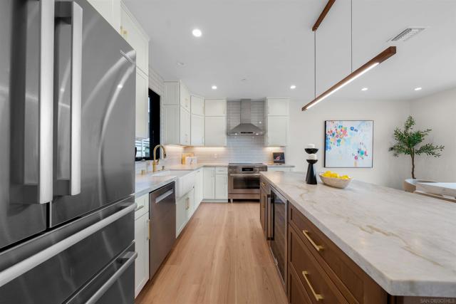 Rare Coastal Gem Steps From the Sand - Discover an exceptional 3 bed, 3.5 bath modern coastal retreat in one of Carlsbad’s most coveted beach blocks. This premier residence offers timeless architecture, refined finishes, and effortless indoor-outdoor flow all just moments from the shoreline. Inside, an open-concept layout with no shared walls welcomes abundant natural light. The gourmet kitchen features Taj Mahal Quartzite countertops, custom tilework, premium appliances, and a large island ideal for gatherings. The living area centers around a sleek electric fireplace and opens to a spacious balcony with a built-in Bull BBQ perfect for sunset dining. The upstairs primary suite showcases panoramic ocean views and a spa-style bath with frameless glass shower, modern bidet, and designer porcelain tile. A flexible loft with a built-in wine fridge offers the perfect media room, office, or lounge. A ground-level en-suite bedroom creates an ideal guest space. Sustainable upgrades include solar panels and a durable metal roof. Additional perks: a two-car garage, extra guest parking, and an outdoor shower for sandy beach days.