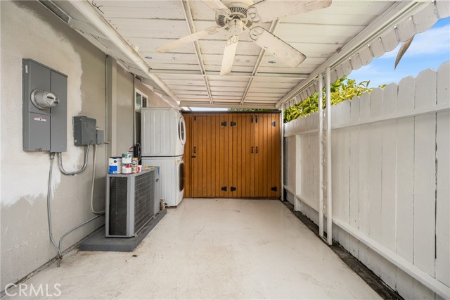 Discover comfortable coastal living in this charming single-level home located in the Huntington Bay community. This inviting one-bedroom residence offers an easy, open layout with a bright living area, smooth ceilings, recessed lighting and wood-look porcelain flooring throughout. The kitchen provides ample storage, clean finishes and functional countertop space for everyday cooking. The bathroom features a walk-in shower and a practical vanity layout. Additional interior perks include dual pane windows, ceiling fans and a central heating and air system with Nest climate control to help maintain year-round comfort. A spacious private patio extends your living space with room for outdoor seating, a ceiling fan, a countertop bar area, full-size laundry hookups and a built-in storage cabinet. It is ideal for relaxing, entertaining or enjoying quiet evenings outdoors. Residents of Huntington Bay enjoy a beautiful community setting with a pool, clubhouse, picnic spaces and landscaped greenbelts. The location places you close to shopping, restaurants, coffee spots and only a short distance from the beach. This well-maintained home offers a convenient and peaceful lifestyle in one of Huntington Beach’s desirable neighborhoods.