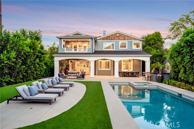 Breathtaking Cape Cod Masterpiece Located In “Rancho Estates” Is The One You’ve Been Waiting For! Privately Situated Behind Automatic Gates and Surrounded By Lush Landscaping, This Home Is One Of A Kind! Newer Construction and Set On A Massive Flat Lot, Find Exquisite Finishes and A Fantastic Open Layout. Upon Entering Find Soaring High Cathedral Ceilings, Wide Plank Wood Flooring, A Gorgeous Iron Staircase, And Designer Touches Throughout. Wall To Wall Bi-Fold Glass Doors Create An Indoor/ Outdoor California Living Experience. This Home Boasts, A True Chef’s Kitchen, Calcutta Marble Countertops, High Grade Wolf Appliances, A Floor To Ceiling Wine Refrigerator, Designated Butler’s Pantry, A Walk-in Pantry +++. Also Find Designer Chosen Light Fixtures, Custom Built-Ins, En-Suites In Each Bedroom & More… Venture Upstairs and Find 4 Additional En-suite Bedrooms, Each Light, Bright and Spacious. The Primary Suite Is Fit For A Queen, Oversized & Boasting Vaulted Ceilings, A Fireplace, Double Walk-In Closets, Inviting Balcony & A Spa-Like Ensuite. Outside, Enjoy A Resort Style Vibe. The Finely Manicured Entertainer’s Oasis Features A Sprawling Loggia, Outdoor Fireplace, Built-In BBQ, Pool, Spa, Multiple Lounge Areas, Private Detached Cabana With Custom Lighting Perfect For A Gym, Plenty Of Space For A Putting Green, Bocce Ball Court and So Much More. Also Find Tesla Solar Panels (Paid In Full), A Newer HVAC System, New Tankless Water Heater, A Designated Laundry Room Conveniently Located Upstairs +++