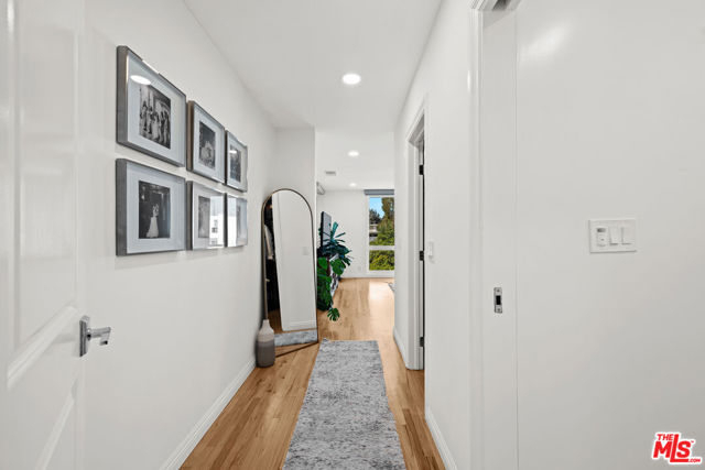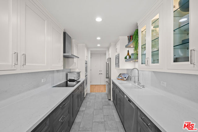 Stunning Top-Floor Corner Condo with Panoramic Views in Prime Brentwood! Discover this gorgeous front-facing 2-bedroom, 2.5-bathroom condo spanning 1,403 sq ft, perfectly positioned on the top floor of a beautifully maintained building in the heart of Brentwood. From the moment you enter through the stylish double doors, you're welcomed into a bright, inviting foyer that sets the tone for the elegance found throughout the home. Enjoy unobstructed treetop views that stretch to the mountains, filling the space with natural light and creating a serene and inspiring atmosphere for everyday living. Every inch of this residence has been thoughtfully updated with impeccable taste, showcasing beautifully refinished hardwood flooring, luxurious marble bathroom tiles, quartz countertops, newer kitchen appliances, gorgeous modern cabinets with under-cabinet lighting, a stylish wet bar with built-in wine fridge, recessed lighting, and custom window treatments. The spacious primary bedroom is a peaceful retreat with abundant windows showcasing the inspiring vistas, along with a beautifully updated en-suite bathroom and a generous walk-in closet. The cozy living room offers a comfortable space to unwind, complete with a fireplace for chilly evenings and direct access to your private balcony, perfect for morning coffee, sunset views, evening wine, or simply soaking in the scenery. A chic wet bar with wine fridge enhances the home's entertaining appeal. The fully equipped kitchen offers everything you need for effortless cooking and hosting. Additional highlights include an in-unit washer and dryer, newer HVAC and ducting, an upgraded electrical panel, double-pane windows, two-car parking with a private EV wall charger, secure building access, and unbeatable proximity to Brentwood's fabulous shops, restaurants, and neighborhood conveniences. Experience elevated living, exceptional style, and breathtaking views in this truly remarkable condo that captures the very best of the Brentwood lifestyle!