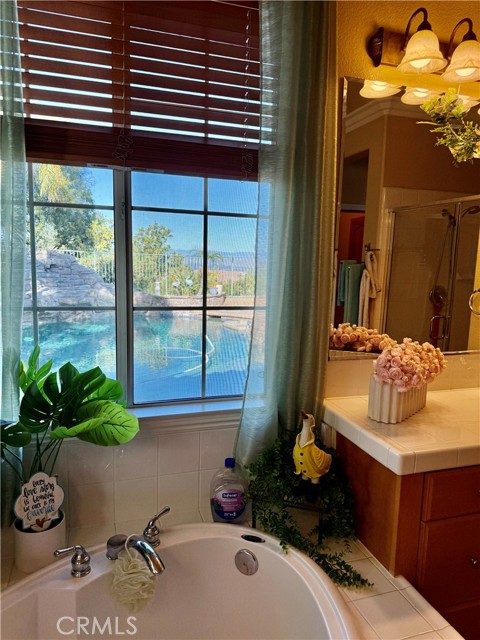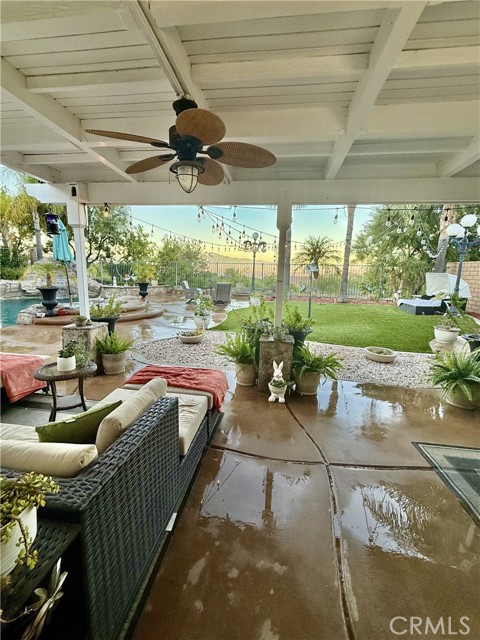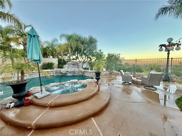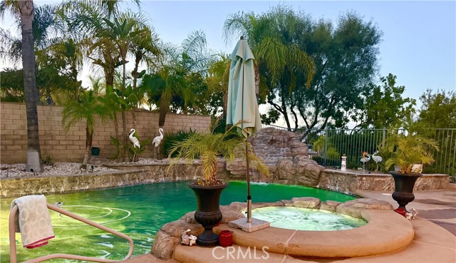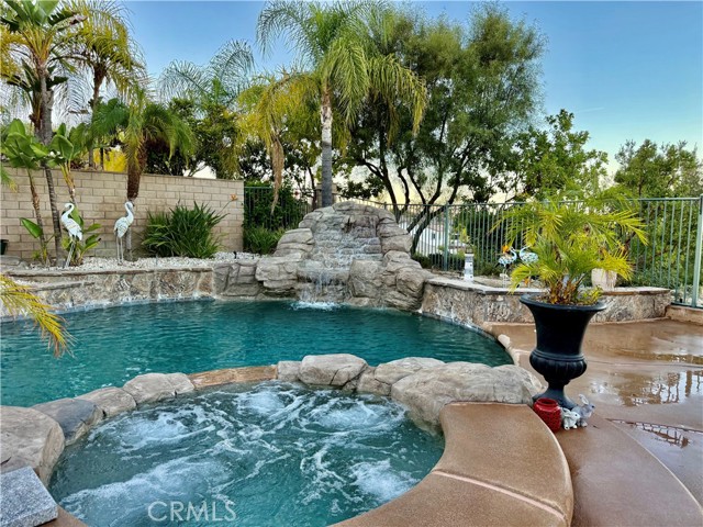 Welcome to 1485 Clearview Circle, a single-story retreat tucked into a quiet cul-de-sac in the Hidden Crest Community. This home captures sweeping mountain and city views and blends comfort with timeless design — including Spanish tile floors, tall 9-foot ceilings, and custom Alderwood doors. The kitchen opens seamlessly to the living space and features brand-new stainless steel appliances and granite countertops. The backyard feels like your own private getaway. Enjoy a rock-waterfall pool and spa, unwind by the fire pit, barbecue at the built-in grill, or relax under the covered patio surrounded by palm trees and low-maintenance turf. With nearby hiking trails, shopping, and quick freeway access, it’s a peaceful escape with great convenience.
