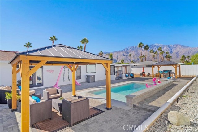 Discover the epitome of Palm Springs living in this stunning Mid-century modern oasis. Solar-owned and featuring a whole house water filtration system, this entertainer's dream home boasts a new private swimming pool, cabanas, and a poolside Sunroom. Enjoy breathtaking mountain views and Palm Tree-lined streets in the coveted Desert Park Estates. Indulge in a gourmet kitchen, master suite with French doors, and a color-changing fireplace. Entire floors, kitchen cabinets and vanities are all brand new. With ample parking, low-maintenance landscaping, and luxurious lighting, this residence offers the quintessential Palm Springs lifestyle.