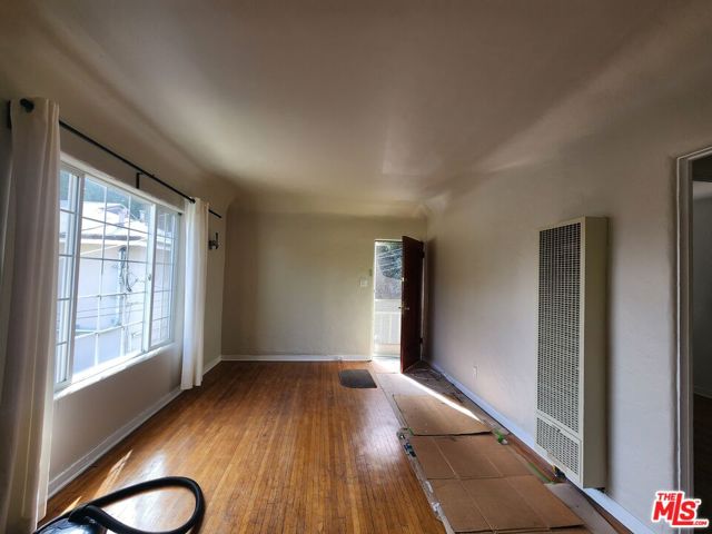 Quiet, private, and filled with natural light. Charming, rare detached 2BR/1 BA upper unit with no shared walls and windows on all four sides. Privately located above the garage. Beautiful unit with vintage character: hardwood floors, double-pane windows, bright living room, formal dining area with attractive built-in china cabinet, and linoleum floor in kitchen. Linen cupboard and drawers in the hallway. Bathroom with separate shower stall, new tile flooring and newly glazed bathtub. Gas wall heater, ceiling fan and two AC units. Private washer and dryer in garage (for use by this unit only). Prime West Hollywood location near Fairfax & Santa Monica Blvd, walking distance to Whole Foods, cafes, restaurants, gyms, Plummer Park, and transit. A peaceful standalone residence in the center of it all. Shown by appointment only. No pets, No smoking; credit score over 675.