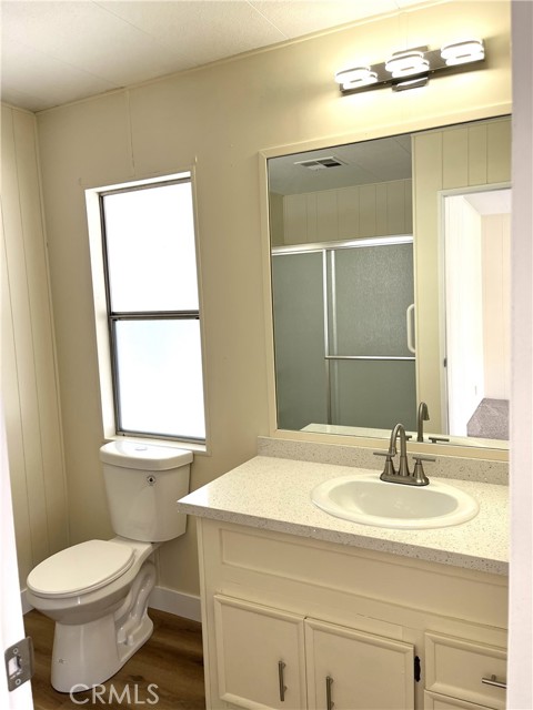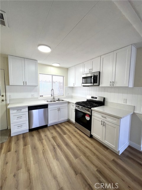 Welcome to Villa Magnolia, a 55+ Gated Community in the city of Riverside. This 2 bedroom and 2 bathroom has upgrades both on the interior and exterior. A beautiful kitchen that opens to the large living room has new cabinets, quartz countertop, sink, faucet, and stainless steel appliances: built-in microwave oven, oven/range, dishwasher, and refrigerator. The home is bright and airy with new interior paint and laminate flooring throughout with carpet in the (2) bedrooms, both bathrooms have quartz countertops, new fixtures, and new toilets. A laundry area is off the kitchen and is equipped with hook-ups for a full-size washer and dryer. The home also has central a/c and heating, a large carport, and a low maintenance yard. Don't let this opportunity pass you up. Villa Magnolia is close to Kaiser, shopping, and freeways.