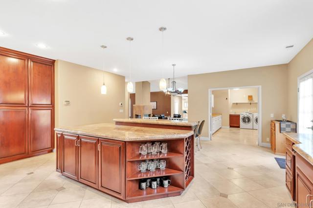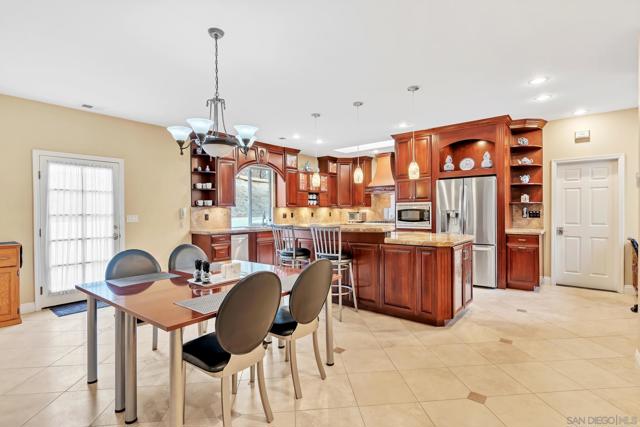 Look No Further – Your Alpine Dream Home Awaits! Nestled in the prestigious Victoria Heights community, this sprawling single-level 3,500 sq ft estate offers the perfect blend of luxury, comfort & functionality. With 4 bedrooms, 5 bathrooms, a 3-car garage plus a separate RV garage, Pool, Owned Solar, and over 1.3 acres of usable land, this home truly has it all. Step inside to a light-filled, welcoming layout where a spacious living room and formal dining room are separated by a stunning double-sided see-through fireplace. The impressive chef’s kitchen is designed for both beauty and performance—featuring granite counters, rich cherry cabinetry, double ovens, a 5-burner cooktop, large eat-in island, built-in office nook, & elegant travertine flooring. Retreat to the expansive primary suite, complete with its own cozy fireplace, jetted soaking tub, separate shower, dual sinks, walk-in closet, and a private slider leading directly to the pool patio. A standout feature of this property is the massive bonus room, boasting yet another fireplace, a full built-in bar, and its own bathroom—perfect for entertaining, a game room, home theater, or multi-use flex space. Step outside to your private resort-style oasis! Enjoy the solar-heated pool, relaxing Jacuzzi, pool house shower, built-in BBQ, and a tropical tiki lounge bar area ideal for sunset watching. The RV garage includes a storage room and an upper loft for additional workspace or storage. This home is filled with thoughtful upgrades including: Owned solar with battery backup : Large laundry room with cabinets, folding counter & sink : Two water heaters & two A/C units : Fully fenced yard with gated driveway: Playset, basketball area & fruit trees: 1.3-acre lot offering privacy and room to grow. Located on a private street within one of Alpine’s most desirable neighborhoods, you’ll enjoy quick access to freeways, top-rated schools, shopping, dining, and more. Luxury, space, and peace of mind—this exceptional Alpine property is ready to welcome you home.