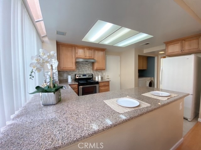 Quiet Premium End Unit location in the charming Tiempo Community of Westpark. 3 bedrooms 2 full bathrooms condo, the largest model in this community. Main floor has a bedroom with direct access to the full bathroom. Upgraded kitchen and stainless steel appliances. Bathrooms were also partially updated. Laminated wood floor throughout (except for kitchen, bathrooms and staircase.) The unit comes with a one car attached garage (direct access) and one designated carport space. Chill with family and friends in the low maintenance patio. Newer AC and water heater. "Mountains to the Sea Trail and Bikeway" is right next to the complex. Extremely convenient location to the 5 & 405 fwy, The District shopping/restaurants & Irvine Civic Center. Plenty of guest parking, 5 association pools, tennis courts, sport court, kids playground, complex is surrounded several by parks. **Refrigerator, washer and dryer are included** **ONE ATTACHED GARAGE AND ONE CARPOOL RESERVED SPOT** Home does not come with furniture.