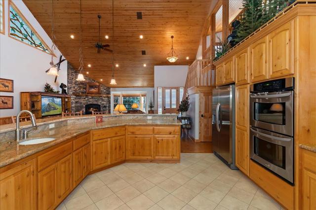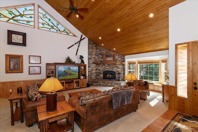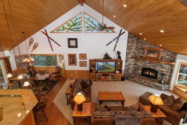 This Residence Was Featured In The 2010 Soroptimists Xeriscape Tour And Is Ideally Located Between Snow Summit And Bear Mountain (Approximately 0.5 Miles From Snow Summit And 2 Miles From Bear Mountain). The Home Features 4 Bedrooms And 5 Bathrooms. The Main Level Offers Easy, Level Living With Handicap Access, Including 4 Bedrooms And 4 Bathrooms Downstairs. The Generous Main Bedroom Suite Includes A Fireplace, A Large Walk-In Closet, Double Sinks, Jetted Tub, Separate Shower And Access To The Back Deck. The Great Room Is Characterized By Soaring Alderwood Ceilings And Features A Corner Stone Fireplace. The Large Kitchen Is Designed For Multiple Cooks With Two Separate Sinks And Counter Space For All. Adjacent To A Generous Dining Area With Back Deck Access. A Huge Loft (Approximately 660 Square Feet) Provides Additional Space For Entertainment Or Sleeping. Attached 3 Car Garage On A Large 15,190 Square Foot Lot. The Exterior, Decking, And Trim Were Professionally Painted And Treated In November 2025. Floor Plans Included