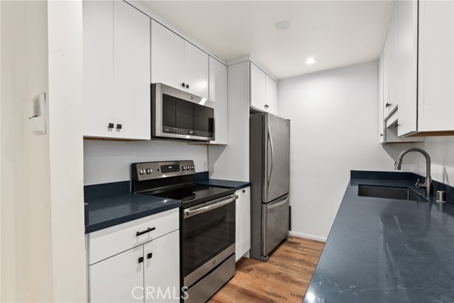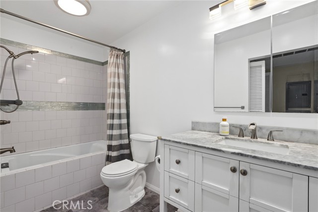 Proud to present this beautifully updated 2 bedroom, 2 bathroom, 1,116 sq ft condo in the highly sought-after Raintree community in Culver City. Thoughtfully renovated with over $80,000 in upgrades in recent years, the home features smooth ceilings, recessed lighting, and engineered wood flooring that elevate the modern appeal. The stylish kitchen is appointed with quartz countertops, a farmhouse sink, stainless steel refrigerator and dishwasher, and an electric stovetop—perfect for everyday cooking and entertaining. The open-concept living room includes a decorative fireplace and flows seamlessly to the extended balcony, surrounded by lush trees and natural light for a peaceful indoor-outdoor experience. Ideal for privacy, the two bedrooms are located on opposite ends of the unit, each with direct balcony access and its own en suite bathroom. The primary suite offers soft carpeting, two sliding-door closets, and a beautifully remodeled bathroom featuring penny tile, modern finishes, and a glass-enclosed shower. The secondary bedroom hosts a walk in closet and adjacent newly tiled bathroom with shower and deep tub. Additional highlights include central heat and air and two assigned parking spaces. HOA includes water, trash, sewer, gas, basic cable and internet. Resort-style living awaits at Raintree, where residents enjoy a wealth of amenities: a heated pool, hot tub, clubhouse, fitness center, scenic walking paths, a large tranquil lake, 24-hour gated security, and even a volleyball court. All of this in the heart of Culver City, just moments from Downtown Culver City, Sony Studios, Baldwin Hills Scenic Overlook, Westfield Mall, countless shops, restaurants, and short distance to two high-ranking elementary schools (Farragut & Linwood E. Howe), Culver City Middle school and Culver City high school.