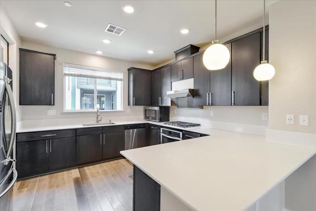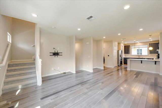 Start building new memories in this beautiful 3-bedroom townhome! Upgraded for your comfort, enjoy indoor lounging with your homes updated interiors complete with hardwood floors, gorgeous recessed lighting, luxury shower room, central airconditioning, and high-efficiency ventilation. Overlooking the spacious open living/dining area is the full G-shaped kitchen, designed to make home cooking a delight with its ready-to-use stainless steel appliances, generous marble countertops with a breakfast bar, and an adjacent balcony perfect for al fresco dining and quick grills! In-unit laundry is also installed to make all chores done in a breeze. Attached 2-car garage ensures that parking will never be a problem. Upstairs are 3 good-sized bedrooms, finished with plush carpeting to ensure a great nights rest. Master bedroom comes with a huge walk-in and a sleek private ensuite. A bonus room with access to a half bath and fitted with a closet is also available - perfect for a private office! Your new home is in a fantastic location that is perfect for planting roots. Walking distance to Bart and VTA stations, Mabel Mattos Elementary School, and Great Mall. Very close to HWY 880, 680, and 237. A beautiful park with a tennis court and playground is also right by your future home.