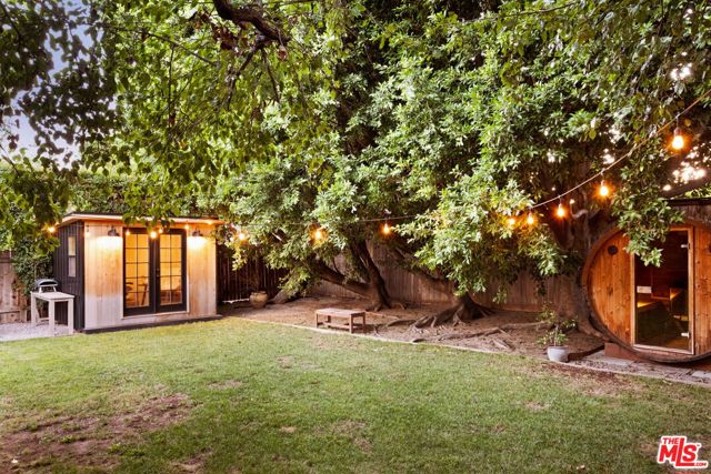 Set midblock beneath a stately elm, this updated yet charming three-bedroom two-bathroom Sherman Oaks home blends original character with thoughtful modern improvements. Sunlit interiors feature refinished wood floors, new windows with custom shutters, and a stylish kitchen with designer finishes. The primary bedroom opens to the backyard through French doors, creating an effortless indoor-outdoor connection. Surrounded by mature landscaping for true privacy, the backyard is exceptional in both scale and lifestyle offerings with a beautiful lawn, a Thermory four-person barrel sauna, and a custom-built detached office with power and AC that is ideal for working or creating at home. Located near highly regarded Kester Elementary and just moments from Ventura Boulevard's dining, shopping, and commuter access, this home retains its charm while delivering modern comfort at every turn.