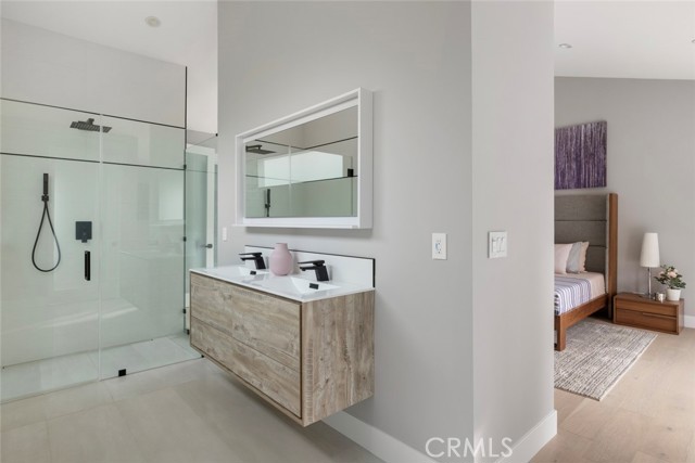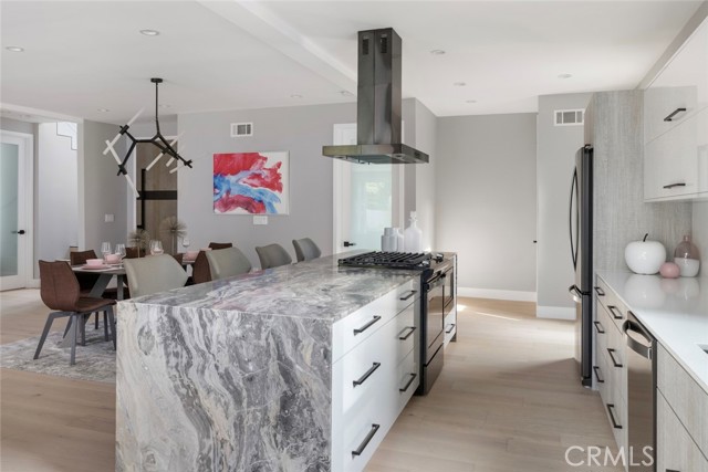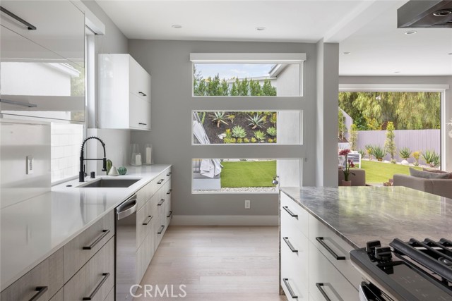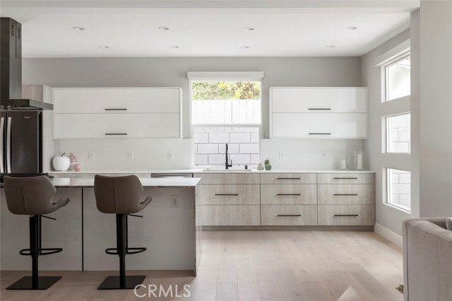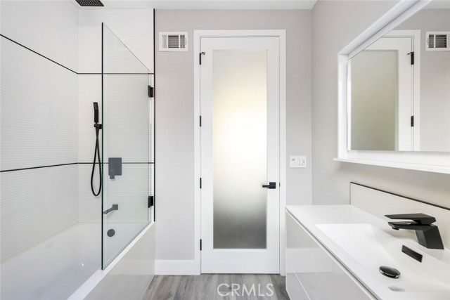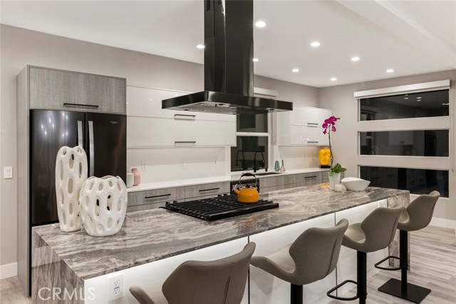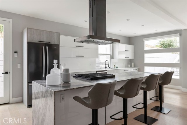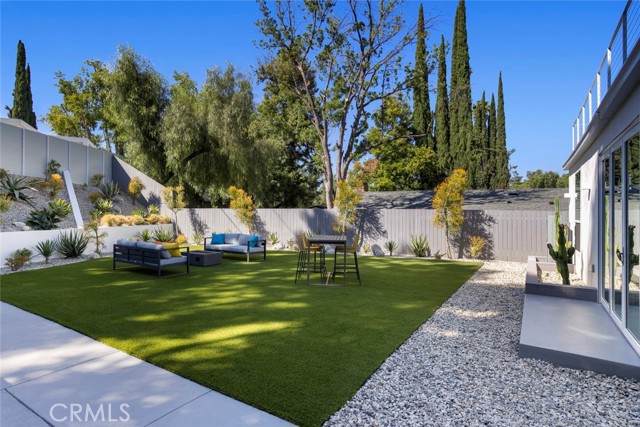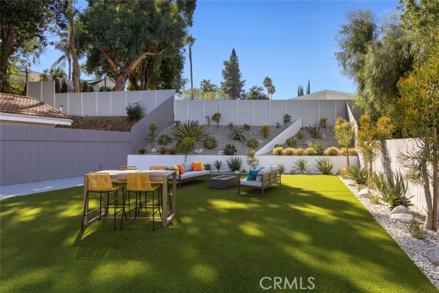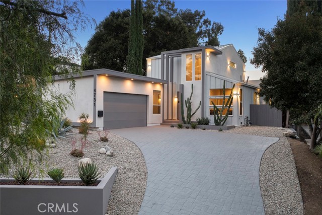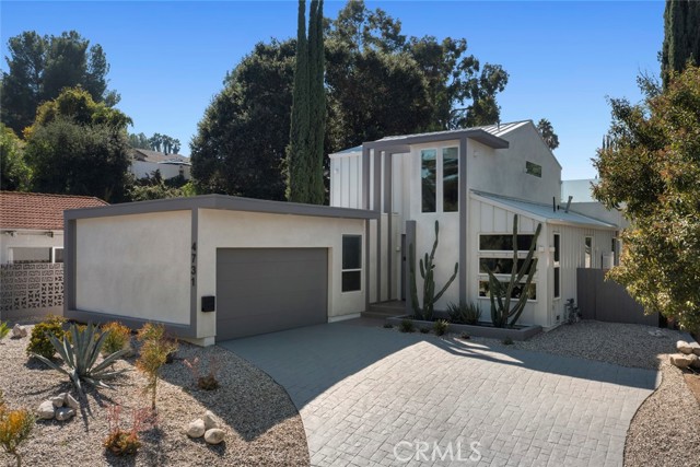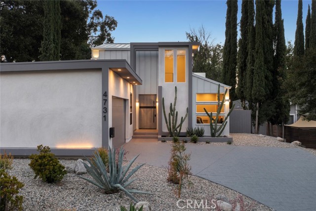 GATED midcentury modern custom home offering a highly desirable "South of the Blvd" locale. Inside this light & bright masterpiece, discover a dazzling renovation preserving all the mastery of its original timeless design while quenching your thirst for quality & a mesmerizing modern style. Completely remodeled down to the studs with the utmost care in modern design and living, culminating in an absolute visual delight, blending the indoor and outdoor spaces together perfectly. A grand and inviting completely open floor-plan allows for interaction with all of your guests & family from anywhere in the home, seamlessly flowing out to the sumptuous and spacious outdoor living area via the custom bi-fold doors. Stunning wide-plank WHITE OAK flooring, recessed lighting, a vast array of windows and custom finishes infuse a dynamic energy into this newly renovated home. The stylish kitchen offers loads of custom soft close cabinetry w/accent lighting, massive center-island w/breakfast bar & waterfall edge, quality appliances, exquisite QUARTZ counters & expansive adjacent dining are absolutely spectacular. 4 spacious bedrooms are located on the first level, one of which features an ensuite bathroom offering a floating vanity and tub/shower combo with frameless glass door, rain shower head & separate body spray. The other 3 bedrooms share a large hall bath, complete with double vanity sinks and curbless walk-in shower. Upstairs, your spacious primary suite dazzles you with soaring vaulted ceilings, loads of recessed LED lighting, dual closets, a private balcony to soak in the rear grounds & a spa-like bathroom you'll never want to leave. Finally, make your way outside where a private and tranquil escape awaits. All new drought tolerant landscaping wraps the 8,000+ Sq. Ft. grounds, allowing you to enjoy multiple areas for entertaining and enjoyment or some good ol' fashioned R&R. This prime Woodland Hills locale places you so close to the Valley's new central hub of dining, shopping and entertainment that Warner Center has to offer, not to mention easy freeway access, less than 30 mins to Malibu and less than 1 mile from one of the Valley's highly accredited elementary schools, Woodland Hills Charter Elementary.