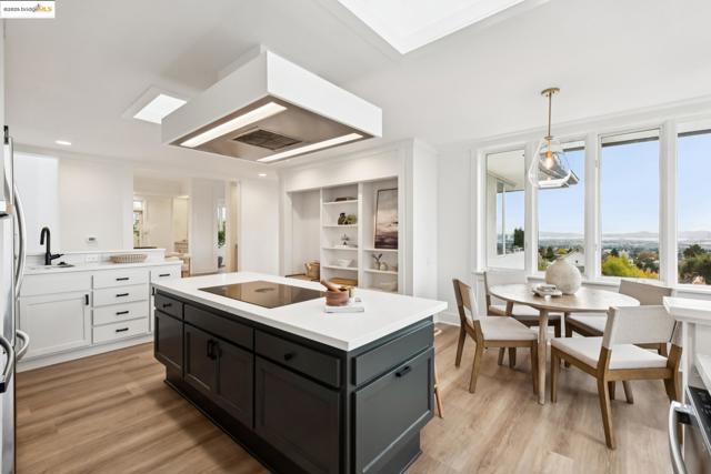 Perched in coveted Upper Rockridge, this contemporary home offers stunning panoramic views of the Bay and Berkeley Hills. The main level welcomes you with a gracious foyer and convenient elevator, opening to a spacious living room framed by expansive windows and breathtaking views. The large dining room and open, updated kitchen create a natural flow for entertaining. The primary suite features a brand-new spa-like bath, with two additional bedrooms and baths, laundry, and a powder room completing this level. A serene patio offers a private outdoor escape or ideal home office access. Downstairs, a separate suite with a generous family room, bedroom and bath provide flexible living space—perfect for guests, an au pair, or an in-law suite—with its own exterior entrance. A large garage with ample storage adds convenience and versatility. Ideally located near Rockridge shopping, dining, BART and top commuter options, this home combines style, comfort, and location in one exceptional package. Views: Downtown