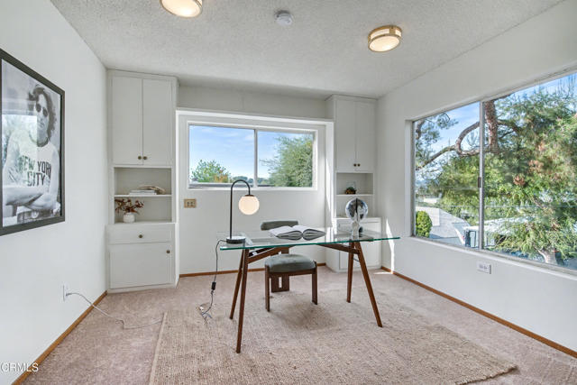 Perched above the street, this charming Mt. Hermon property enjoys sweeping city and mountain views from every room and offers 4-beds & 3-baths within 1,920 sqft. Step through the entryway into a welcoming foyer with direct access to the formal living room, a perfect place to entertain or unwind after a long day. Large windows and French doors fill the space with natural light and frame views of the front brick patio and city beyond. A dining area sits just off the living area, while the kitchen, conveniently located around the corner, opens to a lovely family room. This versatile space features a cozy gas fireplace and access to the rear patio, an inviting spot for dining al fresco or relaxing under the mature trees. The lower level also includes a guest bedroom and bathroom, a great option for visitors or a quiet home office. Upstairs, two generous guest bedrooms, a tiled hall bath, and a convenient laundry room provide ample functionality. The primary suite includes a large walk-in closet, an en-suite bath, and access to a spacious deck. Spanning the length of the home, the deck is the ideal place to enjoy the mountain vistas, city lights, or even the Rose Bowl fireworks display. A detached two-car garage with workshop and a peaceful park-like rear yard complete this property. With close proximity to Highland Park, South Pasadena, and quick freeway access to DTLA & beyond, this Mt. Hermon home offers the ideal combination of comfort and convenience.