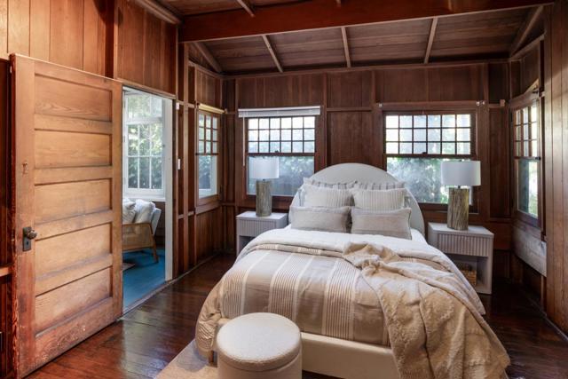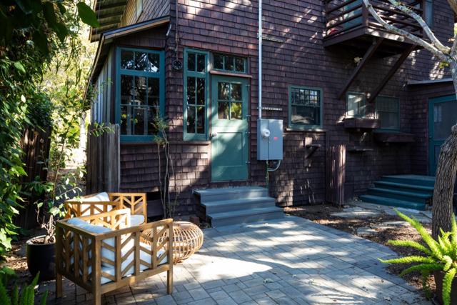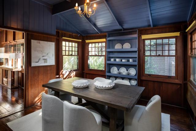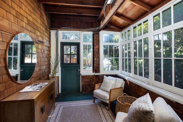 Outstanding location in the heart of Professorville, just blocks to downtown, this classic craftsman shingle home sits on a sunny south-facing corner lot and showcases timeless character throughout. A welcoming porch with Dutch door opens to an impressive great room with soaring beamed ceilings, bay-window seating, double-hung windows, original wood paneling, and a clinker-brick wood-burning fireplace. The dining room offers display shelving and a vaulted, exposed-beam ceiling, while the kitchen retains vintage charm with an antique enamel-finished gas range, granite counters, and a wall-mounted faucet. A main-floor bedroom adjoins an enclosed sun porch with access to the rear patio, complemented by a full bath with cast-iron tub and a separate laundry room-all on the mail level. Upstairs are two spacious bedrooms with multiple windows, exposed beams, and abundant natural light, along with a second bath with stall shower. Additional features include upgraded electrical, fresh paint, and a detached one-car garage. This exceptional location provides easy access to downtown Palo Alto shops and restaurants, Whole Foods, Stanford University, and ideal commute routes, all within the excellent Palo Alto school district. First time available in over 60 years-a very rare opportunity.