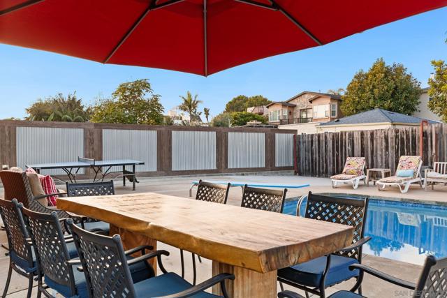 FURNISHED MIDTERM & LONG-TERM RENTAL — Stay & Play Pacific Beach: Pool, Spa & Rooftop Fun Spacious 5BR / 3.5BA La Jolla compound featuring two private units designed for relaxation and fun. The main home offers 3BR / 2.5BA with vibrant style, two living rooms, a fully equipped kitchen, dining area, and a stunning backyard oasis with saltwater pool, spa, firepit, ping pong, and outdoor kitchen with BBQ, pizza oven, and bar seating. Upstairs, a 2BR + loft suite adds modern-industrial flair with a full kitchen, remodeled bath, and rooftop deck showcasing panoramic ocean and city views. Sleeping Setup (max 12): Main Home – King • Queen Murphy • Queen Daybed Upper Unit – Queen • 2 Twins (convertible to King) • Loft King (not suitable for children) 3.5 Baths Additional features include a dedicated salon/office with private bath—perfect for getting ready, content creation, or remote work. Outdoor living shines with lush landscaping, alfresco dining, and string-lit evenings by the firepit. Ideal for large families, groups, or extended-stay guests seeking a private retreat close to beaches, shops, and dining. Available fully furnished only. Rates reflect short-term rental pricing and vary by season and length of stay. Published amounts are estimates; final pricing, fees, and availability are subject to change until a signed agreement. Please inquire for an exact quote. STR-06720L • TOT-603941