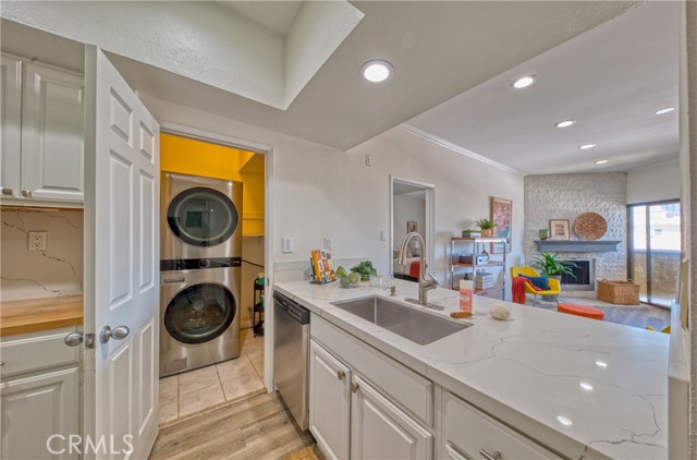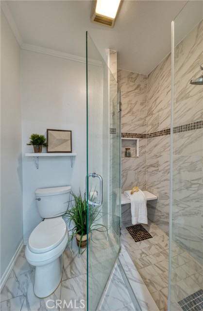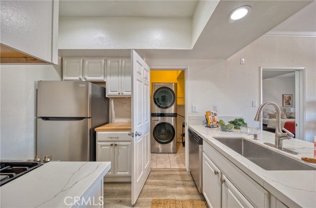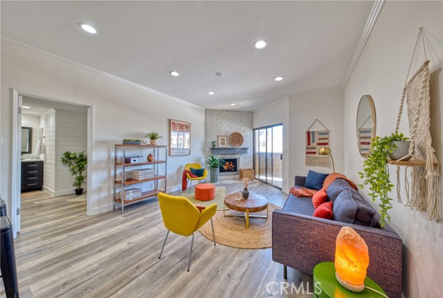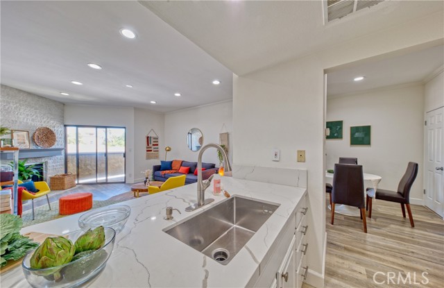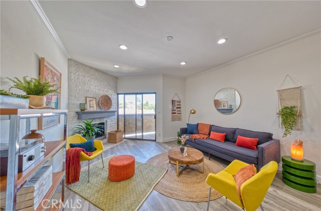 **Short Term Lease Furnished** Welcome tastefully updated top-floor, single-level condo, offering a perfect blend of modern comfort and style. This spacious 2-bedroom, 2-bathroom residence boasts an open-concept floor plan, ideal for contemporary living. Step inside and be greeted by the elegant, wide-plank wood vinyl flooring and recessed lighting that flows throughout the entire unit, creating a warm and inviting atmosphere. The heart of the home is the living room, featuring a cozy gas fireplace, perfect for relaxing evenings. The kitchen showcases classic white cabinetry, sleek stainless steel appliances, bar seating and ample counter space for all your culinary endeavors. The dining area offers built-in storage along with a wet bar and a wine fridge. The unique layout provides ultimate privacy with two master bedrooms situated on opposite sides of the unit. Each bedroom is a serene retreat with its own en-suite bathroom. This unit is equipped with in-unit laundry, central air, and heating for year-round comfort. Additional perks include a dedicated storage unit within the building and two tandem parking spaces, ensuring convenience and peace of mind. Located in a prime area, you'll be just moments away from the vibrant dining and entertainment of Little Tokyo West on Sawtelle, as well as everyday conveniences like Target. With easy access to major freeways, commuting is a breeze. The HOA dues include earthquake insurance, adding an extra layer of security to your investment.