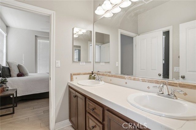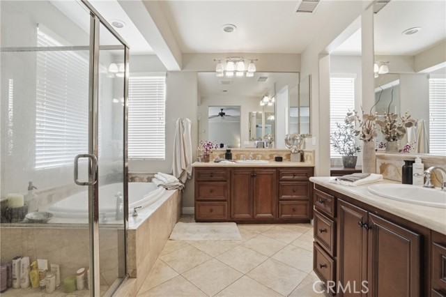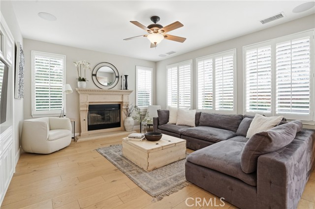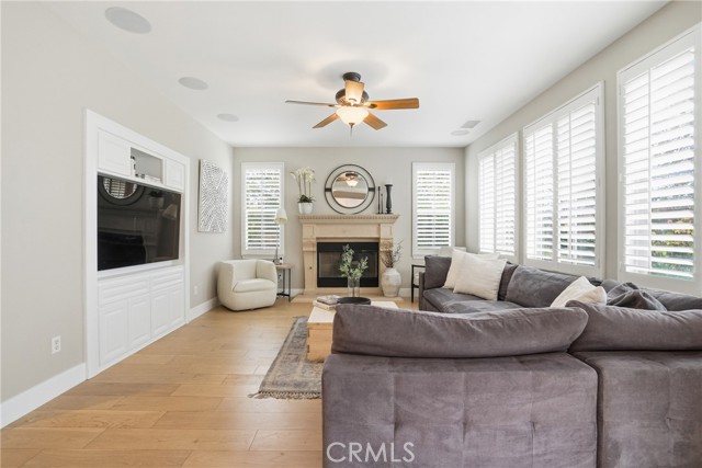 Welcome to this beautiful 4 bedrooms 3 bath home in Big Sky with 3 car tandem garage that sits on one of the largest lots in Tioga community, a well-landscaped, private premier corner lot with gorgeous views from the primary bedroom! Upon entering you'll be greeted with high volume ceilings in Living room & formal dining room! Owner recently paid over $75K on all new engineered hardwood floors upstairs & downstairs, plus fully paid off solar, plus Tesla charging station! Per owner, there is no payments for electric bill with the solar panels! Gorgeous plantation shutters downstairs! Family room has gas fireplace, ceiling fan and built-in entertainment center! Remodeled kitchen with granite counters, designed backsplash, resurfaced white cabinets, recessed lights, stainless steel appliances, butlers pantry and wine closet! Large master suite has ceiling fan, his-&-her travertine counters in bath, separate soaking tub and custom travertine shower! It sits on the cul-de-sac of the well know street for its incredible holiday decorations! Private wrap-around backyard offers built-in BBQ with sitting area, grassy area and putting green! Get up, get out and go get it!