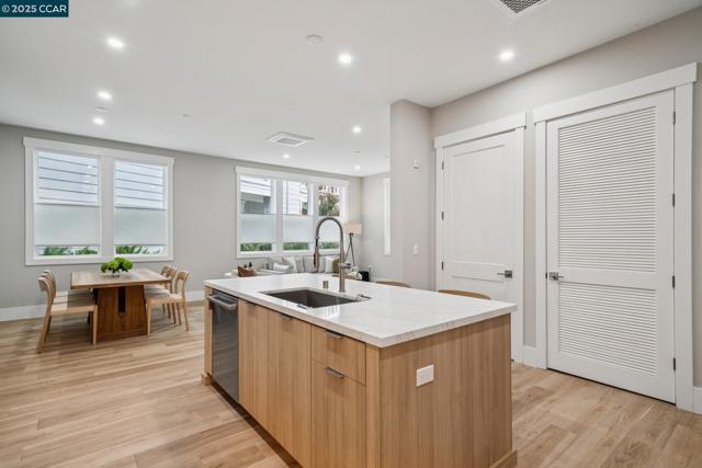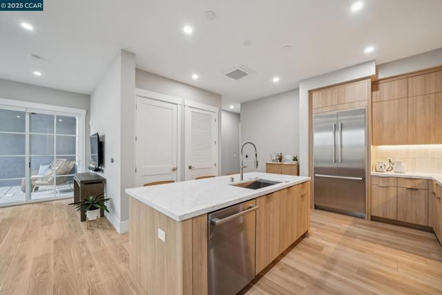 Beautiful SINGLE-Level Condo in the Heart of Downtown Danville. Experience effortless luxury living in this newer-construction, single-level 2-bedroom condo situated just steps from all that downtown Danville has to offer. This breathtaking home features an open-concept layout with high ceilings and an inviting family room filled with natural light from expansive windows. The sophisticated island kitchen boasts quartz countertops, premium stainless steel Bosch appliances, soft-close cabinetry, and a charming breakfast nook—perfect for everyday living and entertaining. The spacious primary suite includes a generous walk-in closet and a spa-inspired ensuite bathroom with dual sinks, quartz countertops, and a walk-in shower. A well-appointed second bedroom offers designer touches and excellent versatility. Enjoy the outdoors on your private patio, ideal for relaxing or hosting guests. The building also offers a secure garage with two dedicated parking spaces plus additional storage for bikes and personal items. A rare opportunity to enjoy modern comfort and unmatched convenience in downtown Danville.