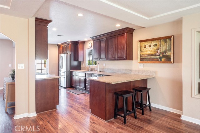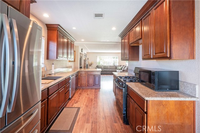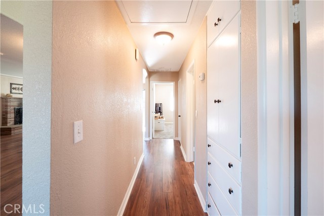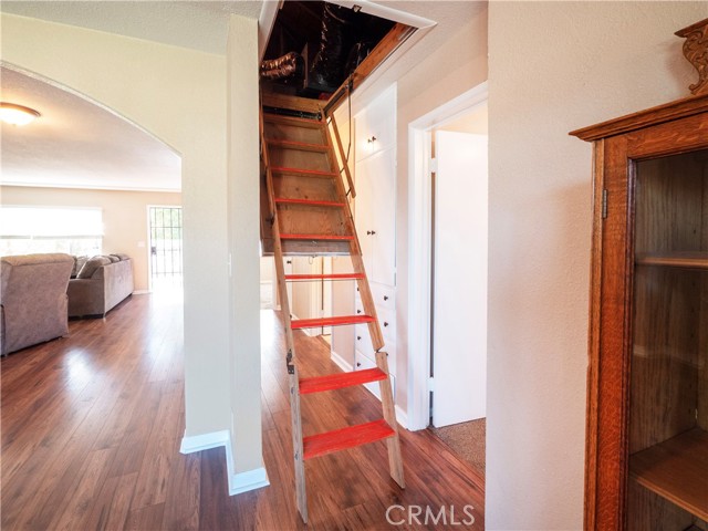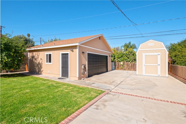 Welcome to a Riverside home that goes beyond expectations—upgraded, stylish, and filled with versatile spaces. The bright open floor plan offers easy flow, accentuated by laminate flooring, dual-pane windows, and a striking wood-burning stone fireplace with a matching stone hearth that anchors the living room. This space is further elevated by a beautifully detailed crown-edge tray ceiling, exclusive to the living room, adding architectural interest and a touch of sophistication. The dining room opens to the living room and is adjacent to the refreshed galley kitchen featuring granite counters, a modern single-basin sink, a new Mohen garbage disposal, stainless steel refrigerator and dishwasher, and an extended counter that doubles as extra eating space. All three bedrooms offer comfort with updated finishes and large closets, while the interior bathrooms shine with thoughtful improvements. The fully renovated primary bath showcases contemporary tilework, a glass-enclosed shower, and a sleek vanity. A massive attic provides exceptional bonus storage. The backyard is a genuine retreat with upgraded irrigation, fresh exterior paint, privacy enhancements, and lush landscaping including palms, plumeria, a naval orange, Santa Rosa plum and Eureka lemon fruit trees. From select vantage points, enjoy peaceful surrounding views that bring openness and calm. The drive-through attached garage includes upgraded electrical and a newer water heater. The impressive 24 ft x 24 ft permitted two-car garage/workshop/flex space is the property’s crown jewel—enhanced with upgraded electrical, structural improvements, water and gas lines, its own water heater, and a mini split system providing heating and cooling for comfortable climate control year-round. Inside, a fully finished wash room offers a tiled shower area, lighting, and ventilation. Nearby, a dedicated laundry area with a utility sink adds convenience without limiting the use of the space. A charming 8 ft x 12 ft barn-style Tuff Shed offers additional storage or hobby potential while enhancing the character of the yard. Set within Riverside’s vibrant university corridor, the home offers quick access to La Sierra University, CBU, UC Riverside, nearby shopping, freeways, and recreation—ideal for those who value convenience, community, and the energy of a university town. This is more than a home—it's a lifestyle upgrade with personality, flexibility, views, and undeniable wow factor woven into every detail.
