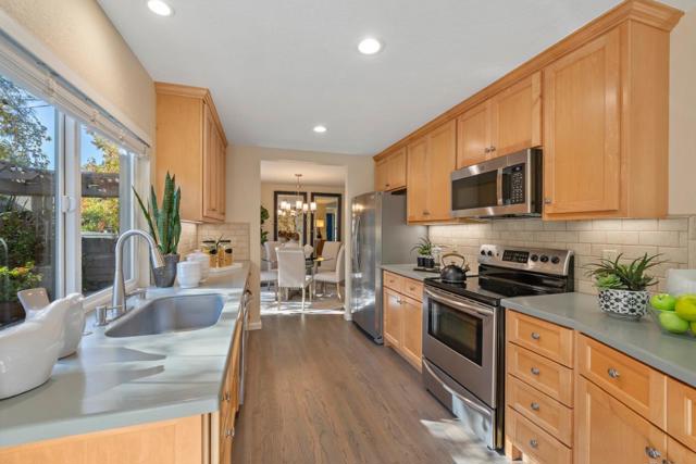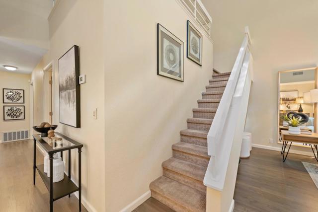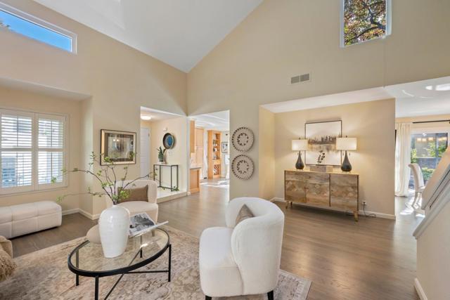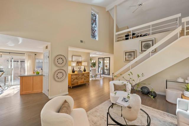 Nestled in the highly sought-after Dry Creek Village community, this exceptional end-unit residence offers seamless indoor/outdoor living with multiple patio spaces accessible from the formal dining room, kitchen, and the primary bedroom. The home features all bedrooms and bathrooms conveniently located on the main level, complemented by a versatile bonus loft ideal for an office, den, hobby space, or home gym. A spacious gourmet kitchen provides abundant cabinetry, generous counter space, and an additional built-in desk area for added functionality. Recent updates include fresh interior paint, new carpeting in two main-level bedrooms, and beautifully refinished hardwood floors. The dramatic living room showcases a vaulted ceiling and opens to a charming courtyard entry. Residents enjoy an array of community amenities, including lush greenbelts and trails, a clubhouse, pool, tennis court, pickleball, and bocce courts, along with a secured gate providing direct access to a nearby shopping center. Ideally located near Willow Glen and Campbell, this home offers unmatched convenience to premier shopping, dining, and entertainment!