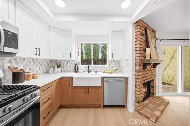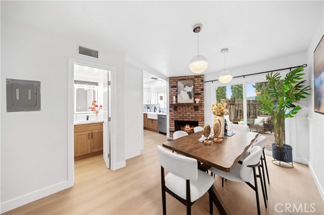 This is a beautifully renovated, bright home located in one of the most sought-after communities in La Habra. The entire house features a modern Scandinavian minimalist style with clean, elegant colors, a charming red-brick fireplace, and abundant natural light flowing throughout. Surrounded by lush greenery, the home feels peaceful and comfortable. It offers three bedrooms and two and half bathrooms, a refreshed kitchen, and a spacious laundry room. Two of the bedrooms enjoy distant views of the Whittier Hills, making it a wonderful place to live and relax. The property comes with one garage, one carport, and an additional parking space. It offers convenient access to major roads, and nearby shopping centers and restaurants make everyday living extremely easy. The spacious private patio is serene and surrounded by various plants—perfect for unwinding, hosting family gatherings, and enjoying all kinds of entertainment. Don't miss out on this opportunity!