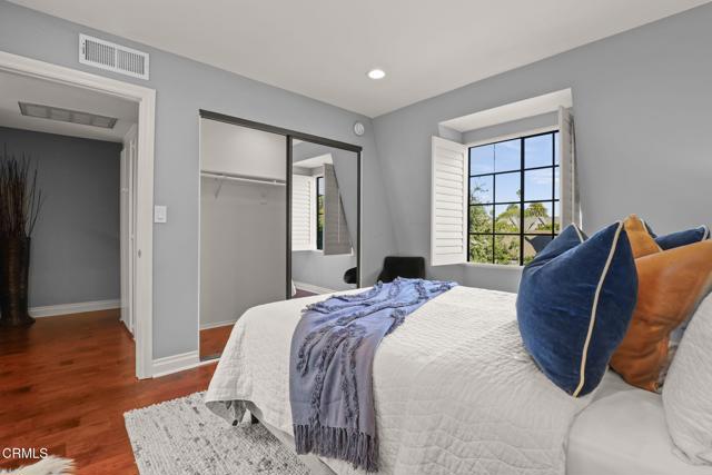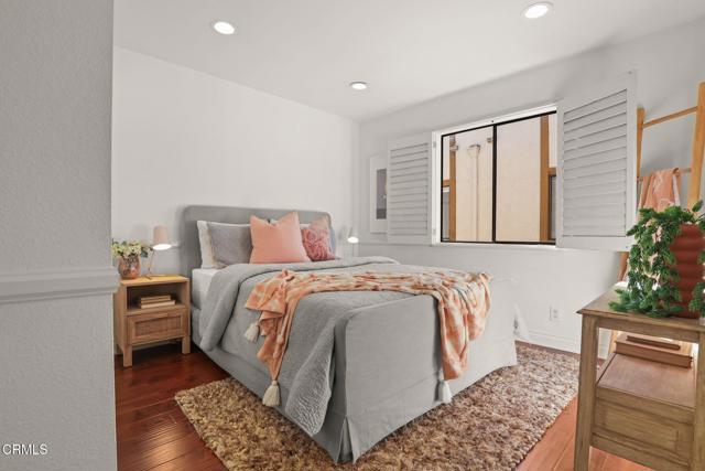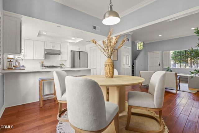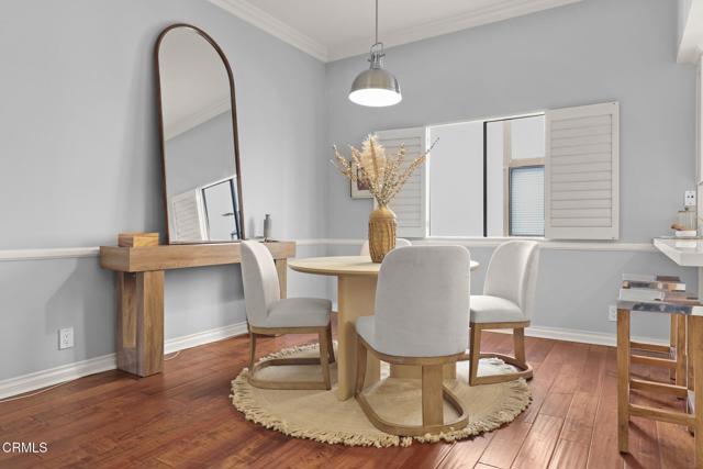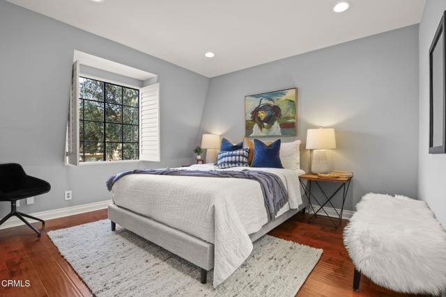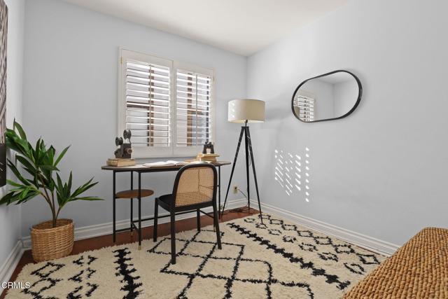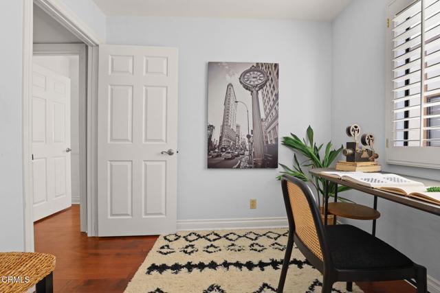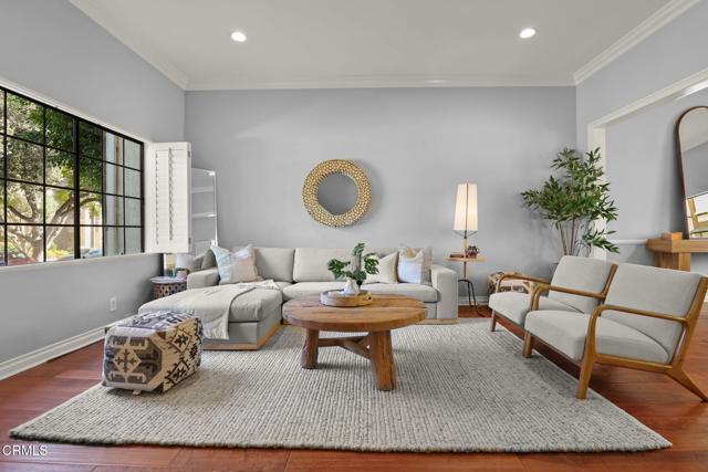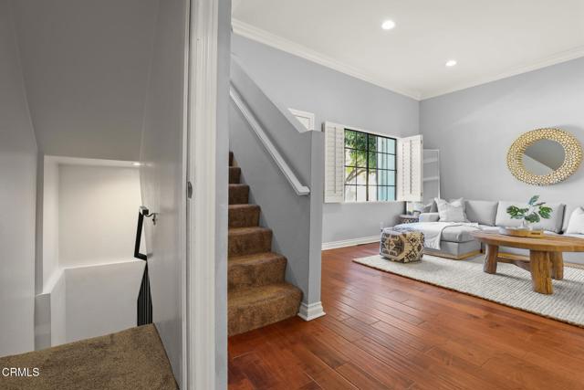 Situated in the heart of Pasadena, this beautifully appointed townhouse offers 2 bedrooms, 2.5 bathrooms, PLUS an office/den. The open and inviting floor plan showcases a bright, airy living area highlighted by ten-foot ceilings, crown molding, plantation shutters, recessed lighting, and wood flooring. The generous living room transitions seamlessly into a spacious dining area, perfect for everyday living or entertaining. The updated kitchen boasts stainless-steel appliances, refined cabinetry, a breakfast bar, and a charming garden window. A stylish powder room and a convenient laundry closet complete the main level. Upstairs, the primary suite features lovely treetop views and a three-quarter bath filled with natural light from a skylight. Down the hallway are a second bedroom, an office/den, and a full bathroom--also enhanced by a skylight. Additional built-in cabinetry in the hallway provides extra storage. An attached two-car garage adds convenience, and the community pool offers a relaxing retreat. HOA dues include earthquake insurance, exterior building insurance, water, trash, and landscaping. With its prime proximity to Playhouse Village and an array of shops, restaurants, and grocery options (including Erewhon, Target, and Trader Joe's), this townhouse captures the very best of Pasadena living. Welcome home!